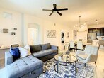 Experience the thrill of the new Epic Universe park, just minutes away from this luxurious apartment. Book your stay for unbeatable comfort and enjoy a $200 credit for extras when you stay 30 nights or more. Located steps away from the second clubhouse, this property offers no resort fees and unlimited access to two luxury clubhouses, including a game room and Disney-themed decor. Enjoy full complimentary access to the resort's amenities, including a gym, heated swimming pools, a lazy river, a water park, and more. The main clubhouse, Oasis Club, is just a 7-minute drive away and features a pool, water slide, mini-golf, event stage, bar, hammocks, and tiki cabanas. The apartment comes with a fully equipped kitchen, air conditioning, a laptop workspace, three smart TVs, patio furniture, hair dryers, a washer/dryer, ironing supplies, free parking, high-speed internet, and a game room. Paid add-ons include access to the spa center, golf, and restaurant services. Additional services such as Pack and Play, high chair, early check-in, and late check-out are available for an extra cost. Located near major attractions, this apartment is 20 miles from Sea World, 22 miles from Universal, and 15 miles from Disney World Magic Kingdom. Nearby outlets include Ross Dress for Less and Sephora, and transportation options like Uber and Lyft are available. Supermarkets such as Publix and Target are within a few miles, and local restaurants and golf courses are easily accessible. Guests must be at least 18 years old to book. No unregistered guests, smoking, or pets are allowed. The property is strictly for vacation use and not for filming or as a warehouse. A QR code is required for resort access. The apartment features keyless entry with a code provided prior to check-in. Our team is available for support throughout your stay, ensuring everything goes as planned. A safety protocol is in place to ensure the well-being of guests and personnel. The apartment includes a laptop workspace and high-speed internet, making it ideal for remote work.
