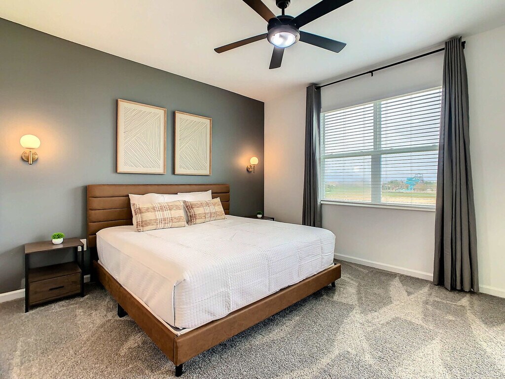 Welcome to this sophisticated and spacious vacation condo located on the second floor at Champions Gate, an excellent choice for a family getaway. Inspired by the sun of Florida and the magic of Walt Disney World, this condo combines elegant style with a premium location, offering everything you and your family need for an unforgettable experience. The property features a master bedroom with a king-size bed, a thematic Mickey Mouse bedroom with two queen-size beds, and a third bedroom with a bunk bed and a full-size bed. Guests must climb stairs to access the unit. Feel at home with full complimentary access to the resort's amenities, including a fully equipped kitchen, air conditioning, bed linens, four smart digital-cable TVs, patio furniture, hair dryers, a washer/dryer, ironing supplies, free parking, high-speed internet, and resort access. The social area includes a dining room for eight, a living room with a sofa bed, and a digital smart TV. Essentials are provided for the first night only, including toiletries and kitchen supplies. Guests have unlimited access to two luxury clubhouses, with the second clubhouse featuring a waterpark just steps away. Additional amenities include a gym, spa center, heated swimming pools, a lazy river, splash pad, kids craft play-zone, Oasis Clubhouse bar, volleyball courts, basketball, golf, Tikki bar, family cinema, arcade games room, business center, tennis courts, and a restaurant. Some amenities may incur additional fees. Champions Gate is only minutes away from the magic of Walt Disney World Resort. Nearby attractions include Sea World, Universal Studios, and various Disney parks, all within a short drive. For shopping, Ross Dress for Less and Sephora are nearby, along with supermarkets like Publix and Target. Transportation options include Uber and Lyft, and there are several local restaurants and golf courses in the vicinity. Guests must be at least 18 years old to book a reservation. No unregistered guests, smoking, or pets are allowed inside the unit. The property is exclusively for vacation use, and filming or use as a warehouse is not permitted without prior authorization. To access the resort, guests are required to share a guest list to create and share QR codes. The property features keyless entry with a door code provided prior to check-in. Enhanced cleaning procedures are in place, following WHO and HSE standards, to ensure guest safety. The property offers high-speed internet, making it remote work-friendly, although a laptop computer is not included.