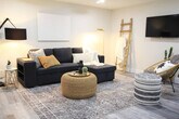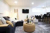 Welcome to this Boho-inspired private basement suite in Edmonton, offering 1100 sq ft of space with a private entrance. Perfect for long-term stays, this suite comfortably sleeps six, making it ideal for families. Enjoy the convenience of self check-in, fast Wi-Fi, and a ROKU TV. The suite is professionally cleaned and sanitized, ensuring a comfortable stay. The fully equipped kitchen features an 11ft kitchen island, and in-suite laundry is available for your convenience. Located just steps from the River Valley, you're only minutes away from Whyte Ave, the heart of downtown, the ICE District, and the University of Alberta. Feel at home in this beautifully decorated suite with modern furnishings and a warm ambiance. Relax in the living room on the comfortable sectional couch while enjoying your favorite shows on the ROKU TV with fast Wi-Fi. The fully stocked kitchen is equipped with brand new stainless steel appliances, including a microwave, fridge, electric stove, and dishwasher, along with all necessary cookware and utensils. The suite also features a sparkling clean washroom with a walk-in shower, sink, and toilet. Plenty of free street parking is available in front of the suite. Step out from your private entrance to the serene Mill Creek Ravine, perfect for an afternoon stroll on Edmonton's finest walking and biking trails. Millcreek is a vibrant neighborhood in southeast Edmonton, known for its diverse community and convenient location. Enjoy nearby attractions such as the Millcreek Ravine, Southgate Centre, and Mill Creek Outdoor Pool. The neighborhood is also close to the University of Alberta, Jasper Ave, the Ice District, and Whyte Avenue, offering a vibrant nightlife and shopping scene. West Edmonton Mall and the Edmonton International Airport are just a 20-minute drive away. Quiet hours are between 10 PM and 8 AM to respect the neighbors, as the owners live upstairs. No pets are allowed in the home, and this is a non-party property. A $250 fee will be charged if the property smells of smoke or any evidence of smoking is found inside. Late check-out fees apply if you have not vacated the property 30 minutes after the 11 AM check-out time, unless prior permission is granted. Any violation of the house rules could result in immediate termination and removal from the property without a refund. The suite offers a remote work-friendly environment with fast Wi-Fi, allowing you to get work done at the kitchen table. Registration Number: 392106521-002