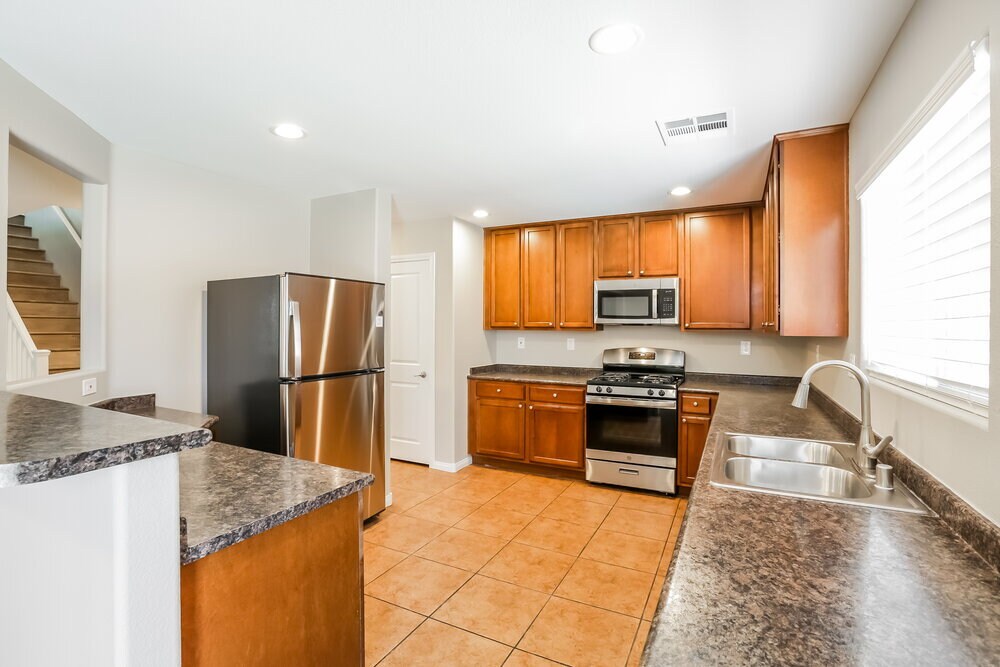 Please note, our homes are available on a first-come, first-serve basis and are not reserved until the holding fee agreement is signed and the holding fee is paid by the primary applicant. This home features Progress Smart Home - Progress Residential's smart home app, which allows you to control the home securely from any of your devices. Learn more at Coming soon! This home is currently being enjoyed by another resident but will be available soon. Please respect their privacy and do not disturb. You can complete the application process and reserve this home for a $500 non-refundable holding fee until it's ready for move-in. This fee must be paid within 24 hours of being pre-qualified and will be applied to your first month’s rent if you enter into a lease for this home. Enjoy Las Vegas living at its best in this renovated rental home. This two-level, Spanish-style home has three bedrooms and two bathrooms. An open floor plan and high ceilings make the living room feel even bigger, and the tile floors provide a nice touch. The kitchen is full of great modern features, including stainless-steel appliances, a double sink, and a pantry for extra storage. All three bedrooms are on the top floor, including the spacious main suite, which offers a walk-in closet and a private bathroom with dual vanity sinks and a separate tub and shower. The home also has a two-car garage and a patio in the fenced backyard. Call today to schedule a tour.