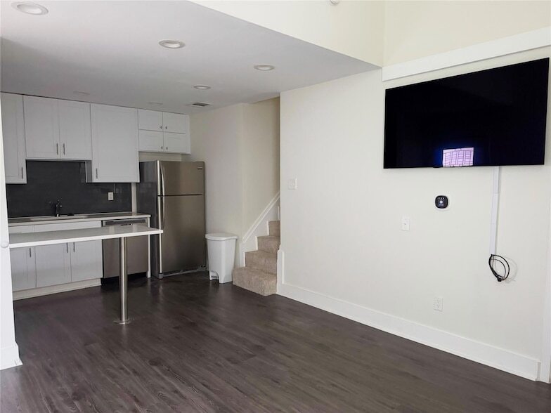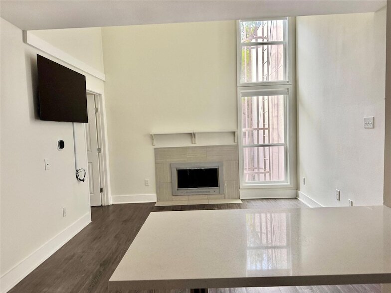 Experience modern living in this stunning, freshly painted condo at The Flats at 935 Condominiums in Austin. This move-in-ready condo features a spacious and versatile two-story layout, highlighted by a downstairs main bedroom with a private ensuite bathroom and a bright, airy living area with soaring ceilings. Upstairs is an additional bedroom and full bathroom. The rental is designed for total convenience, with high-speed Wi-Fi, cable, and a mounted flat-screen TV all included in the price, along with patio furniture for your private outdoor space and assigned parking spot #45. The sleek kitchen boasts stainless steel appliances and ample cabinetry, while the community offers premium amenities including a clubhouse, sparkling pool, and a fully equipped workout facility.