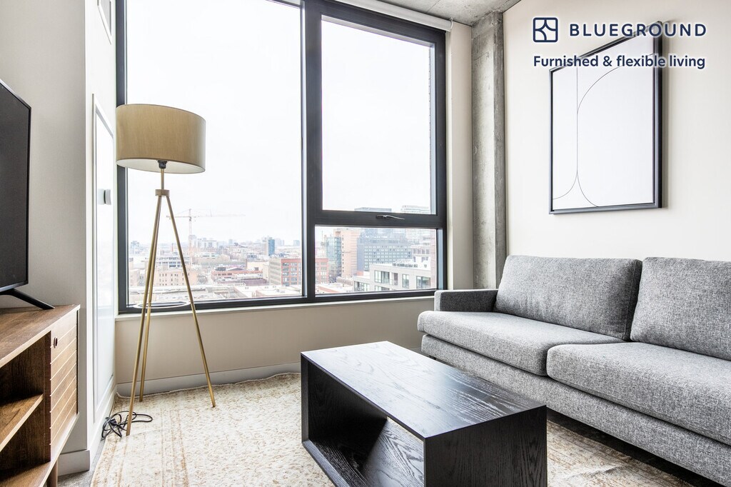 Discover the best of Chicago, with this one bedroom apartment in West Loop with views over the city. It’ll be easy to simply show up and start living in this furnished apartment with its fully equipped kitchen, living room, and our dedicated, on-the-ground support. (ID #CHI297) The advertised rate of $2,690/month is the lowest available price, based on a 4 month(s) and 4 day(s) stay with a move-in date of November 19, 2025. If you’re looking for a 1-year stay, the rate is $3,510/month. Rates vary depending on the duration of stay, season, and other parameters. For exact pricing and additional pricing components, please visit our website and enter your desired move-in and move-out dates. The rate is applicable when billed upfront; it can be higher if billed in multiple payments. Brokers are welcome to reach out. Were you looking for an unfurnished lease? Try Blueground instead and upgrade from unfurnished to furnished living: - Furnished at rates comparable to unfurnished - No setup or furniture costs - save thousands - Move-in ready - save time, just bring your suitcase Designed with you in mind Thoughtfully designed with bespoke finishes, modern furnishings, and a fully equipped kitchen, you’ll enjoy that “I’m home” feeling with this Blueground apartment. Whether you’re lounging in your comfortable living room streaming the latest and greatest entertainment on the smart TV or premium wireless speaker, or getting some well-earned rest on the superior quality mattress with luxury linens, you’ll fall in love with everything this West Loop apartment has to offer. This apartment also offers in-apartment laundry. Sleeping arrangements Queen Bed, 63in/160cm Amenities Building amenities unique to this one bedroom apartment include an on-site: - BBQ Area - Doorman - Dryer - Elevator - Swimming pool - Washing machine - Lounge - Parking - Pets allowed - Rooftop BBQ Arrival and ongoing support The entire apartment is yours to enjoy! Throughout your stay, you’ll have access to our Client Experience team through the Blueground App. You can schedule additional cleanings, submit maintenance requests, and view our neighborhood recommendations with just a few taps. We’ll share all details upon confirmation of your stay. Ideally Located Located in West Loop, this furnished rental invites you to explore the edges of downtown Chicago. From endless dining and bar options to art galleries and stylish shops, West Loop has emerged with so much to offer daily. During weekends, residents savor trips to the Chicago French Market and the vibrant strip of Randolph Street. The latter is known as “Restaurant Row” and is lined with some of the city’s best eateries. Fulton Market, one of the hippest and fastest-growing neighborhoods, is ideal for dinner and drinks. Union Station is only a 5 to 10 minute walk away. Other things to note Building amenities may have an extra cost. This Blueground apartment has flexible lease options, allowing you to book it for one month, a year, or more. Pets are welcome, though weight limits and breed restrictions apply and may incur fees. Parking is offered based on availability and is subject to a fee. We take great pride in ensuring every photo displayed is shot in our own units with our actual furnishings. That said, we regularly refresh our decor and furniture arrangement, which may differ from what’s pictured. Also note - This apartment is located in an industrial zone, so it can be noisy inside from time to time - This apartment's central location means it can be noisy at times - This is a guarded building equipped with a doorman/concierge at all times [SI]