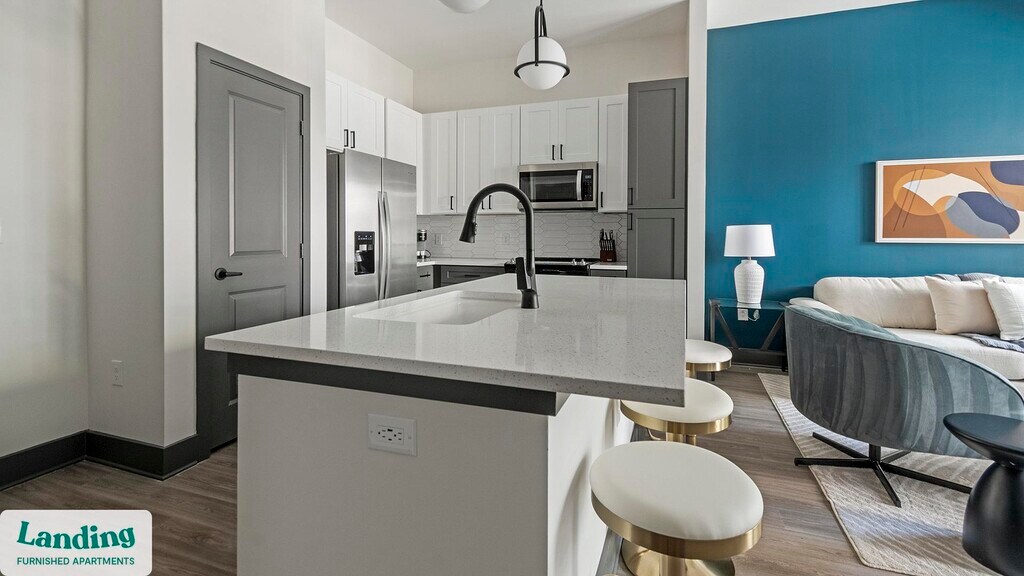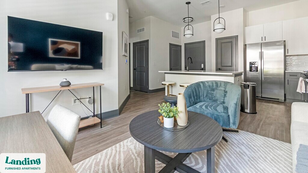Landing offers flexible lease terms from weeks to months. Please always visit our website or contact us for the latest pricing & availability. Stay longer, save more: 6-Month Minimum base rent: starts at $2310/mo 12-Month Minimum base rent: starts at $1860/mo Landing offers flexible leases across a network of over 35,000 fully-furnished apartments throughout 375+ cities so you can rent on your terms, practically anywhere, and avoid the hassle of paying deposits or application fees. Visit to learn about all the benefits of a Landing membership, see our competitive up-to-date pricing, explore available apartments, take virtual tours, and make reservations online without jumping through traditional rental hoops. Landing's apartments at Artea at Southbank are designed for comfortable, easy living, with the ability to stay as long as you like. Experience living with Landing Every apartment is outfitted with all the modern essentials including: custom-designed furnishings, a fully-equipped kitchen with deluxe stainless steel appliances, a gourmet coffee maker, premium linens, Smart TVs, and incredibly fast, reliable internet for working from home. When you live with Landing, you'll enjoy a hassle-free experience with the added benefit of 24/7 access to our dedicated member experience team. Some of the nitty-gritty: a background check and proof of income are required; we're completely smoke-free; bundled utility packages and pricing vary based on length of stay; pet-friendly options available; listed price reflects a 12-month minimum stay.