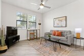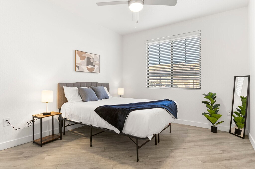 Feel at home in this newly built condo in Glendale that is steps away from the stadium and some of the best shopping, dining, and golf courses in greater Phoenix! This condo is perfect for football, leisure, snowbirds, spring training, and business travelers! This apartment is suitable for a family, group of friends, or business travelers and has all of the amenities necessary to enjoy your stay. Great amenities await you, including a resort-style heated pool, a jacuzzi hot tub, a fitness center, a large outdoor fireplace, a BBQ area, and an arcade. The apartment also features quartz countertops, stainless steel appliances, a fully equipped kitchen, 100mbps+ internet, modern decor, a Smart-TV with streaming apps installed, a washer/dryer, complimentary coffee, and a patio. Pets are welcome with an additional fee of $100-300 pet fee based on stay length. Ideally located close to different attractions, this apartment is in Glendale, right in the Westgate entertainment area. Enjoy live music, movies, football, and dining all in one place, just across the street from the building. It is also a quick drive or Uber/Lyft ride anywhere! Smoking of any kind is not permitted within or outside of the apartment, including balconies, patios, or common and/or parking areas. Any sign of smoking is a violation of the stay agreement, which may result in immediate termination and recovery fees beginning at $500. There is a $200 penalty for removing smoke detectors and a $200 penalty for lost key fobs. No outside guests are allowed without permission. Check-in is at 4 PM and check-out is at 11 AM (with a $75/hr late fee). Guests must agree to not disturb neighbors at all times during the stay and must observe quiet hours from 9pm-8am each day. [SI]