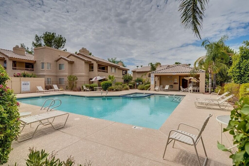 Welcome to Villa Palma, a charming two-bedroom, two-bathroom apartment located on the second level, complete with a balcony. This nicely furnished home offers a real wood fireplace and is centrally located close to Loop 101, Scottsdale/Shea Hospital, Mayo Hospital, and Scottsdale Greenbelt, with easy access to walking and biking trails, restaurants, golf, and hiking. This apartment is fully furnished and includes HD digital cable, local telephone, and wireless Internet. Enjoy the convenience of being just steps away from the pool and hot tub. The complex also offers multiple other pools and tennis and pickleball courts, with 5 tennis and 4 pickleball courts available. Two pickleball paddles and balls are included for your use. BBQs are available at the pool area, and all linens, bath, and pool towels are provided. Please be aware that there is a $250 per month electric cap, and guests are liable for any electric bill overage beyond this amount. Unfortunately, pets are not allowed in this apartment. Villa Palma is ideally situated for those looking to explore the vibrant Scottsdale area. With its proximity to major hospitals, scenic trails, and a variety of dining and entertainment options, you'll find everything you need within reach. The nearby Scottsdale Greenbelt offers beautiful walking and biking trails, while golf enthusiasts will appreciate the nearby courses. Guests are liable for any damages caused to the property. Smoking and parties are not permitted. Check-in and check-out details are managed online, ensuring a seamless experience. A laptop computer is not included. [SI]