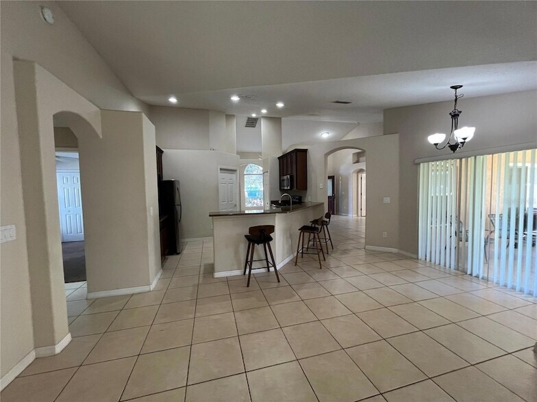 Ready to move in. Spacious 4-bedroom, 3-bathroom single family home located in a desirable area of St. Cloud with community pool. Separate living room and family room, plus separate dining room and breakfast area. Good sized bedrooms throughout. Master bedroom has vinyl planking. Master bathroom has tiled floor with his and her vanities, his and her walk-in closets, separate tub and shower, privacy door on the master toilet. The other 3 bedrooms and 2 bathrooms are located off the hallways from the family room; one bathroom leading onto the covered patio. The breakfast nook also has a sliding glass door leading onto the patio and back yard where we feel sure you and your family will enjoy many hours of quality time and BBQ's. The sides of the house are fenced and the rear has trees so privacy for you and your family. to enjoy time outside. The community pool is also there for your use. Call/text now to view.