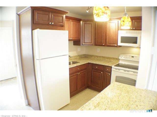 Townhouse-style one-bedroom apartment with an open layout and updated kitchen and bathroom featuring granite countertops. Dining area or office space leads to a private back patio. End-unit location offers additional yard space and extra natural light. Laundry on site and off-street parking available. Conveniently located near the Quinnipiac River district with easy access to hospitals, highways, and shopping.