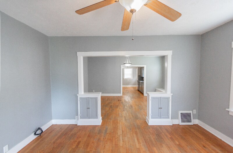 Property Id: 935372 Charming remodeled 3 bedroom, 2 bath home. Living room, dining room and kitchen have hardwood floors. There is a breakfast nook off the kitchen. The dining room has a window seat along the south wall. There are ceiling fans and new carpet in the bedrooms. Bathroom has a shower/tub combo, tiled wall. The house has a basement with laundry hook-ups. There is a garage, a long driveway and 2 off street parking spaces. Enjoy a large shaded back yard.