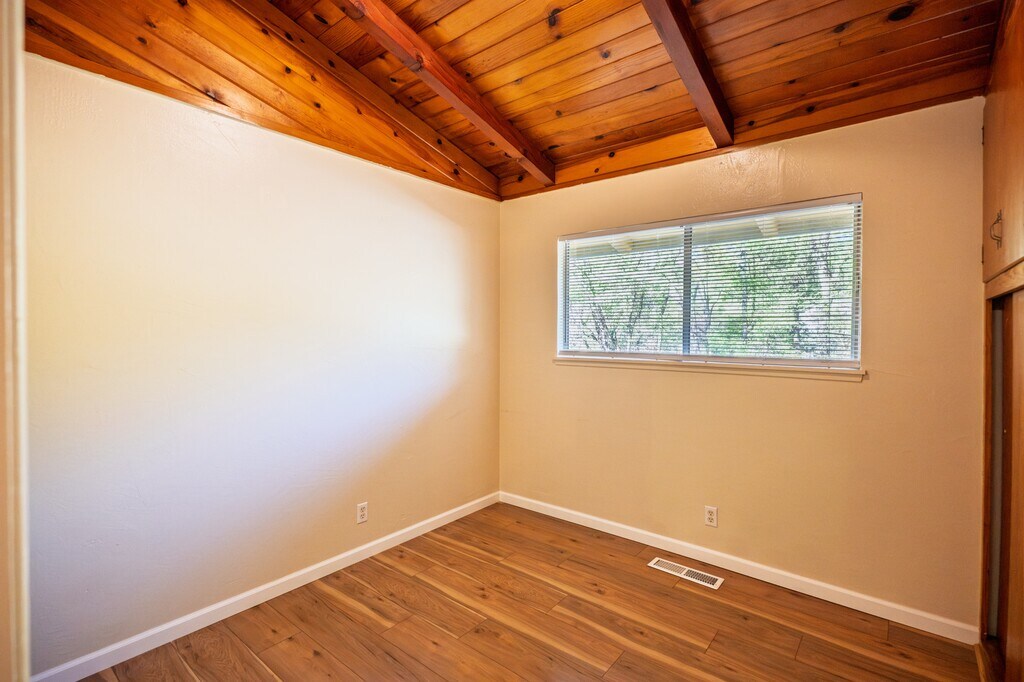 Property Id: 180865 Step inside and the first thing you'll notice are soaring vaulted wood beam ceilings with tongue-and-groove pine, a detail you just don't find in most rentals. Paired with brand new flooring throughout, the space feels warm, open, and full of character. The kitchen and living area are flooded with natural light from large windows and a sliding glass door that opens onto your own private patio, surrounded by mature trees and completely separate from the neighboring unit. Three spacious bedrooms with vaulted ceilings and built-in closet storage. Open kitchen with full appliances. Garage plus driveway parking. Washer and dryer hookups already in the unit. Minutes from downtown Sonora with easy access to restaurants, breweries, coffee shops, boutiques, grocery stores, and more. Right next to Sonora High School and a short drive to Columbia College. Rent $2,195/month. Deposit $3,000. One-year lease. Available now. Tenant pays PG&E. TUD water included up to base usage allowance. No smoking. Pets considered on a case-by-case basis. Pre-screening required via TurboTenant.