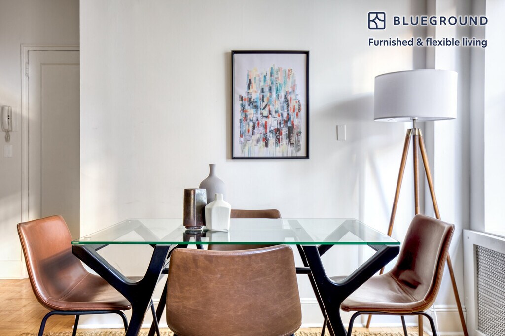 Show up and start living from day one in New York with this charming one bedroom Blueground apartment. You’ll love coming home to this thoughtfully furnished, beautifully designed, and fully equipped Lenox Hill home. (ID #NYC367) The advertised rate of $6,180/month is the lowest available price, based on a 11 month(s) and 15 day(s) stay with a move-in date of January 23, 2026. Rates vary depending on the duration of stay, season, and other parameters. For exact pricing and additional pricing components, please visit our website and enter your desired move-in and move-out dates. The rate is applicable when billed upfront; it can be higher if billed in multiple payments. Brokers are welcome to reach out. Were you looking for an unfurnished lease? Try Blueground instead and upgrade from unfurnished to furnished living: - Furnished at rates comparable to unfurnished - No setup or furniture costs - save thousands - Move-in ready - save time, just bring your suitcase Designed with you in mind Thoughtfully designed with bespoke finishes, modern furnishings, and a fully equipped kitchen, you’ll enjoy that “I’m home” feeling with this Blueground apartment. Whether you’re lounging in your pretty living room streaming the latest and greatest entertainment on the smart TV or premium wireless speaker, or getting some well-earned rest on the superior quality mattress with luxury linens, you’ll fall in love with everything this Lenox Hill apartment has to offer. Sleeping arrangements Queen Bed, 63in/160cm Amenities Building amenities unique to this one bedroom apartment include an on-site: - Doorman - Dryer in building - Elevator - Washing machine in building - Pets allowed Arrival and ongoing support The entire apartment is yours to enjoy! Throughout your stay, you’ll have access to our Client Experience team through the Blueground App. You can schedule additional cleanings, submit maintenance requests, and view our neighborhood recommendations with just a few taps. We’ll share all details upon confirmation of your stay. Ideally Located This furnished property is situated in Lenox Hill, on the Upper East Side. Stretching from Central Park to the East River, the neighborhood has seen a rapid increase in locals wanting to call it home. Lenox Hill is full of noted cultural institutions such as the Frick Collection, Asia Society Museum and the Park Avenue Armory. Hunter College and Rockefeller University are also in the area, attracting hordes of students. Other things to note This Blueground apartment has flexible lease options, allowing you to book it for one month, a year, or more. Pets are welcome, though weight limits and breed restrictions apply and may incur fees. Brokes CYOF. We take great pride in ensuring every photo displayed is shot in our own units with our actual furnishings. That said, we regularly refresh our decor and furniture arrangement, which may differ from what’s pictured. Also note - Other apartments in this building are undergoing renovations, and you may hear construction noise inside your apartment from time to time [SI]