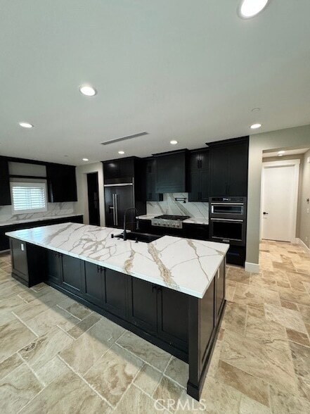 This exceptional new construction home, built in 2023 and located within the highly desirable Snow Line School District of Victorville, flawlessly blends modern design and luxury. The 5-bedroom, 4-bathroom residence boasts beautiful travertine tile floors throughout the open living spaces and custom plantation shutters for privacy and style. An open gourmet kitchen features elegant quartz countertops, perfect for preparing meals and entertaining, while the thoughtful layout ensures comfort with three bedrooms having their own private, attached bathrooms. Practicality meets potential with a three-car garage that includes its own bathroom, offering flexibility for use as a studio or workspace. The spacious outdoor area, featuring desert landscaping and a covered concrete patio, provides ample room for relaxation and additional parking.