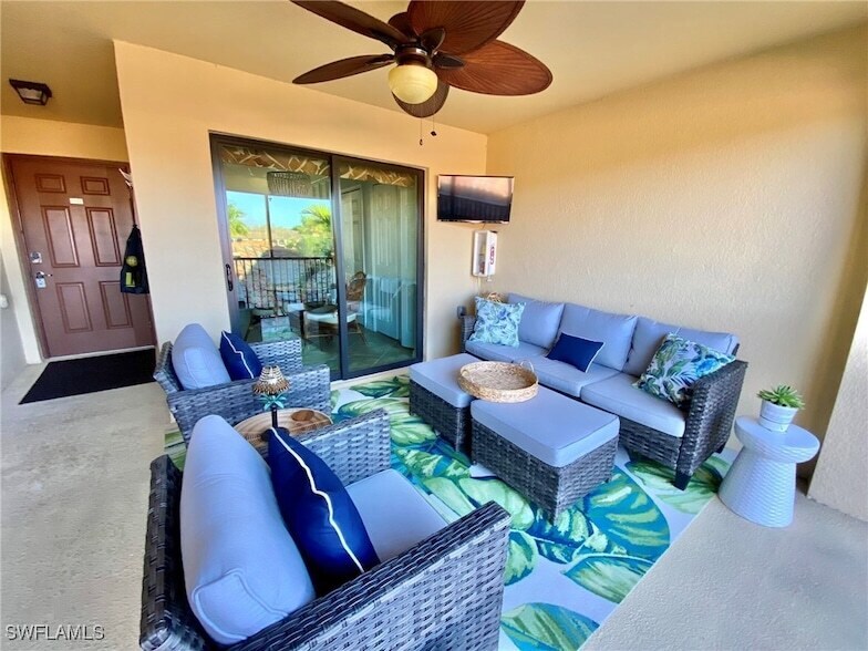 Available for 2026 Season! SOCIAL MEMBERSHIP. Fully Furnished Turnkey Two Bedroom w/Den, Two Bath Condo in Treviso Bay! Garage is not included. The owner's car is stored in the garage. Golf Membership not included. Treviso Bay is located in South Naples and just minutes away from Naples' famous 5th Avenue elite shopping & entertainment, pristine beaches and is surrounded by the natural beauty of the Rookery Bay National Estuary Reserve. Amenities include 24-hour guarded gate, lavish landscaping and, professional tennis courts, fitness center and a 54,000 square foot private club house that includes fine dining, shops, spa services, resort-style lagoons, lap pools, tennis center with pro shop, aerobics and Pilates studio.