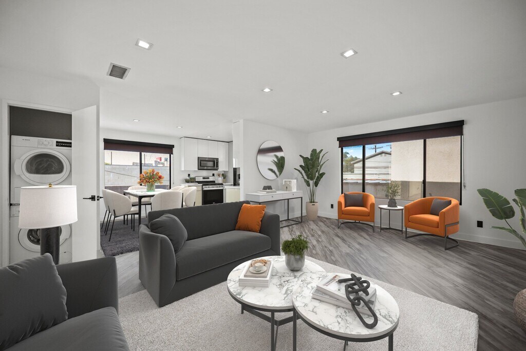 Property Id: 2478645 Three Bedroom Two Bath | Midcentury Modern Architecture | Minutes to the Netflix, Sunset Bower Studios, and Sunset Gower Studios | Sparkling White Stone Quartz Countertops with Self-closing Cabinetry | Los Angeles Re-Defining Modern Living INQUIRIES | TEXT/ CALL : EMAIL : CURRENT AVAILABILITIES: 955 N Oxford Ave Unit 5 - Matterport 3D Tour Inspired by midcentury Modernism architecture, these newly renovated rental homes in Hollywood are just minutes to the new Netflix corporate headquarters, the Sunset Bower studios, and the Sunset Gower studios. The thriving Downtown Los Angeles is just minutes away on the nearby 101 Freeway. 955 N Oxford Avenue, located in the heart of central Los Angeles in the Hollywood Studio District neighborhood, features a nine-unit, two-story low-rise building with enhanced modern architecture and a gray cement shade base and accents of earth tone colors. | EXTERIOR | - Newly Modernized Façade - City Approved & Completed Earthquake Seismic Retrofit - Keyless Electronic Entry | INTERIOR | - Cellular Shade Window Blinds - Spacious Designer Floor Plan - Vinyl Plank Flooring | KITCHEN | - Modern Designer Cabinetry - Quartz Countertops - Stainless-Steel Appliances - Refrigerator - Range w/ Oven - Microwave - Open Kitchen Space Layout | BATH | - Tiled Shower and Bath - Glass Shower Doors - Oversized Vanity Mirror | AMENITIES | - Washer & Dryer (in unit) - Assigned Parking - A/C Units