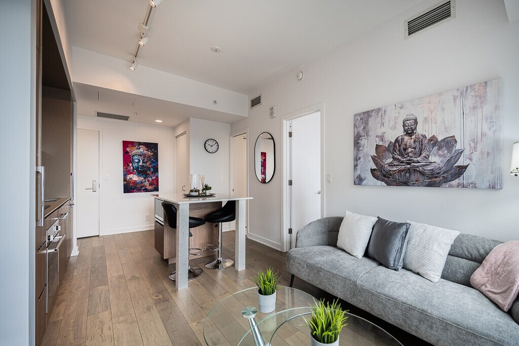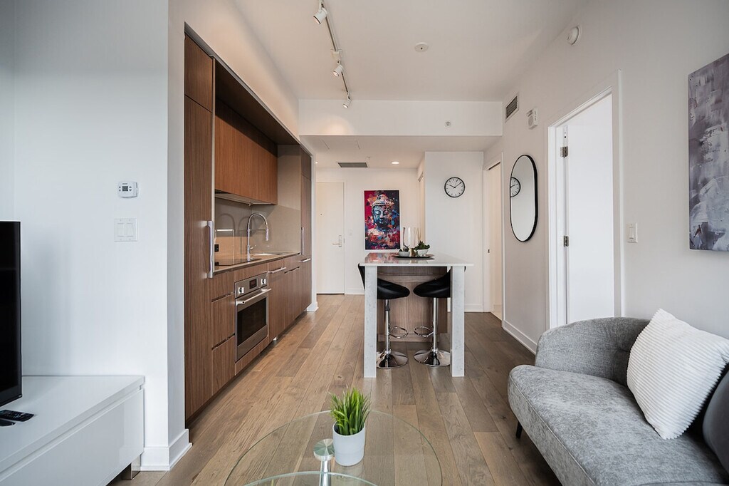 The advertised rate of C$3,065/month is the lowest available price, based on a 1 month(s) stay with a move-in date of November 21, 2026. Rates vary depending on the duration of stay, season, and other parameters. For exact pricing and additional pricing components, please visit our website and enter your desired move-in and move-out dates. The rate is applicable when billed upfront; it can be higher if billed in multiple payments. Feel at home in this luxurious high-rise in downtown Montreal, offering breathtaking city views from a spacious 1-bedroom apartment with one full bath and a private balcony. Expansive 10-foot ceilings invite natural light through large, sunny windows. This apartment boasts high-end finishes throughout and features a Smart TV and high-speed Wi-Fi. Indoor parking with in/out privileges is available for a separate fee depending on the length of your stay. A variety of cleaning services, including biweekly or monthly options, are available for an extra charge. Conveniently located steps from Lucien l’Allier metro station, train access, and the underground Montreal network, this apartment is in the heart of downtown Montreal. No parties or loud noises that can disturb the residents are allowed. Smoking (including cannabis/cigarettes or any kind) is prohibited inside the apartment, on the balcony, or in the building. Please care for your home away from home. [SI]