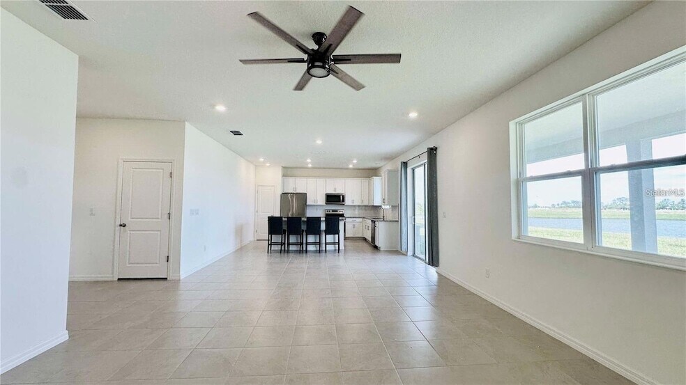 This stunning 1-year-old home has everything you could want! Situated on a rare water-view lot, it features 9-foot ceilings, a first-floor bedroom with its own full bathroom, a spacious great room, and an extended covered patio with no neighbors behind. The kitchen is a chef s dream, equipped with a large eat-at island, 42-inch upper cabinets topped with crown molding, granite countertops, a brick-laid subway tile backsplash, a pantry, and a stainless-steel Whirlpool appliance package. Upstairs, you ll discover three additional bedrooms, each with its own closet, plus a dedicated laundry room. The primary suite offers a generous walk-in closet, and its attached bathroom includes a linen closet, a raised dual-sink vanity with granite countertops, and a walk-in shower with tile surround. The community provides easy access to US-301, I-75, and I-275, making commuting a breeze. Don t miss this incredible opportunity!