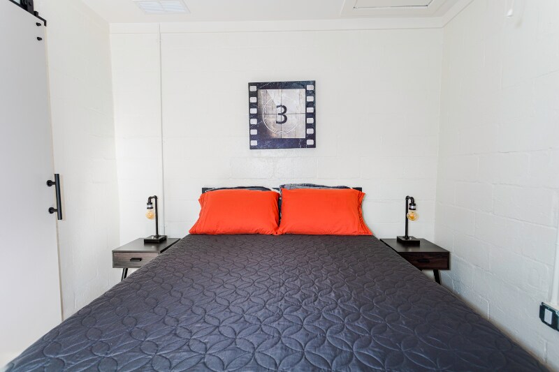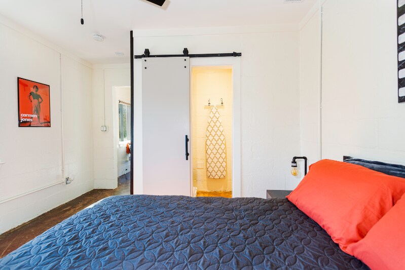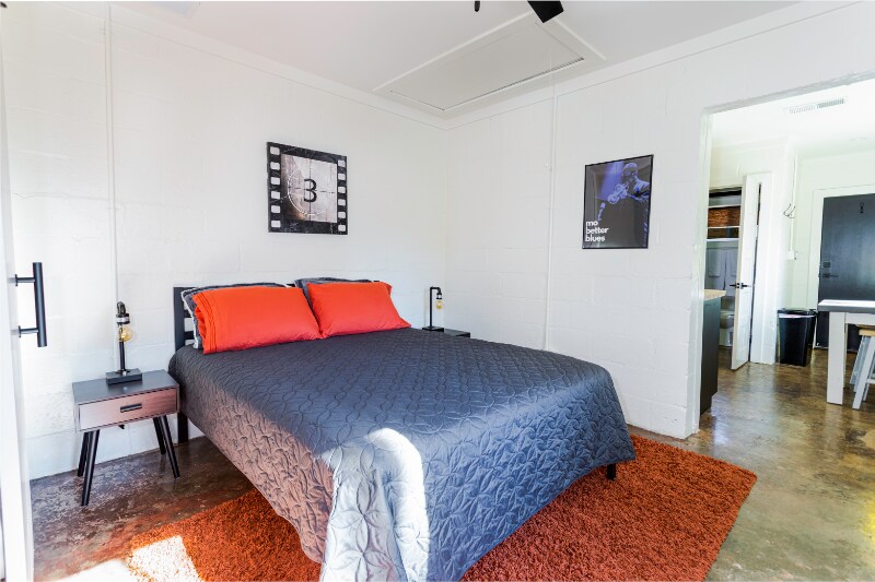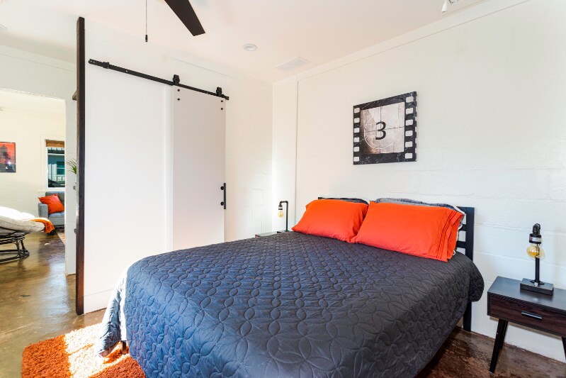 Property Id: 2355438 STYLISH FUSION OF SOUTHERN VIBES AND CITY FLAIR in our newly renovated loft-style apartment. It's fully furnished and move-in ready! This apartment has one bedroom with a queen-sized bed, and a sleeper sofa in the living, so the unit sleeps up to four! JUST OVER TWO MILES FROM DOWNTOWN ATLANTA, this vintage film-themed apartment is perfect for film industry professionals, film aficionados, or anyone wanting a clean, free-flowing living space. If you're a traveling film industry professional, you'll find this place centrally located to six major film studios within a 10-mile radius! We've also hosted many other corporate travelers. TRAVEL NURSE-FRIENDLY space as weve hosted several nurses, many of which have renewed their lease several times! The sleeping quarters were voted the favorite feature of this space by past travel nurses! Check the map in the images for hospitals and medical facilities close to the home. SLIDING BARN DOORS AND PENDANT LIGHTS give this space a "loft" feel and a modern touch, but with the comfort and convenience of an entire home. This uniquely contemporary home features rustic-stained concrete floors. Clean white lines outline the concrete block walls which are decked with reclaimed wooden shelves throughout the home adding a warm contrast of color and character. The white walls serve as a backdrop, hanging colorful movie posters created especially for this unit. ENCLOSED BACKYARD WITH WOOD PRIVACY SLAT FENCING for the inviting exterior features a fire pit and BBQ grill. Spend an evening around the fire pit and BBQ grill with our comfortable Adirondack chairs! RETRO-STYLED KITCHEN to prepare a home-cooked meal. Fully stocked for cooking and baking with a cast iron skillet hanging on the wall for use, as well as a wine rack. MANY ATTRACTIONS ARE CLOSE BY: - Atlanta Westside Beltline Trail (0.5 miles) - Pittsburgh Yards (0.5 miles) - Downtown Atlanta (2.4 miles) - Krog Street Market (4 miles) - Ponce City Market (5 miles)