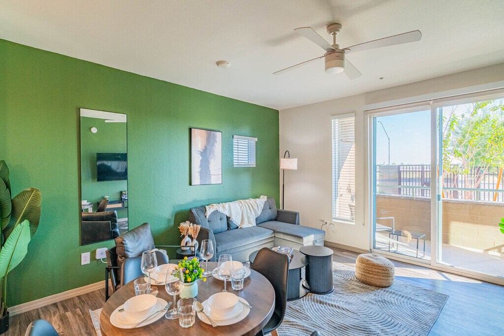 Experience an elegant 3-bedroom unit in the heart of Glendale, where comfort meets sophistication. Feel at home in this upscale space that offers plush beds and a serene atmosphere. There are no elevators at this property, so guests need to walk upstairs. This upscale home blends socially and environmentally responsible design with standout service and premium amenities. The sleek open-concept layout connects the kitchen, dining, and living areas, creating a bright, modern flow perfect for working, unwinding, or entertaining. The 3-bedroom unit features a fully equipped kitchen with a microwave, stove, oven, refrigerator/freezer, dishwasher, coffee maker with coffee essentials, electric kettle, sink with hot and cold water, glasses, silverware, pots, pans, and a dining table with chairs. The living room includes a sofa bed, chair, 4K 55" HDR smart TV, and coffee table. The bathroom is stocked with essential toiletries. Parking is available on the premises, and instructions will be given at check-in. Pets are allowed depending on size or if they are service animals for a fee of $20 per pet per night. There is a 2 pet maximum and only cats/dogs are allowed. The pet combined weight limit is up to 80 pounds. The following breeds (purebred and/or any mixed form) are currently restricted: Akita, American Bulldog, Chow Chow, Doberman, German Shepherd, Husky Breeds, Malamute, Pit Bull Breeds, Presa Canario, Rottweiler, Staffordshire Terrier, St. Bernard. Early check-in/check-out may be accommodated at a fee of $35 for up to two hours, and you must message 24 hours beforehand to see if this request can be authorized. Surrounded by premier dining, shopping, and entertainment, this centrally located apartment offers effortless access to top attractions. Quiet hours are between 10 pm and 8 am every day. If there are noise complaints or any violation of this rule, it may result in cancellation of booking and removal from property without refund. There is a strict no-party policy, and if there is a party of any kind, the police will be called and everyone will be removed from the property with no refunds. No unauthorized guests are allowed at the unit, and there is a $100 fine per guest if discovered. Smoking is prohibited without exception on this property, and if any signs of smoking are found in the unit or on the premises, a fine of $500 will be imposed. If you are found to have brought pets without prior notification, there will be a $500 fee. If the noise monitors are tampered with, there will be a fee. You may be charged extra for cleaning if the property is left in a state that necessitates additional cleaning. Lost or unreturned keys will incur a $500 fee. For delayed checkout, there will be a $500 late checkout fee. If you are bringing a pet(s), please let us know beforehand for the fees, otherwise there will be a fine of $500 if discovered. Security cameras are in the hallways for security. Includes an office desk and chair. [SI]