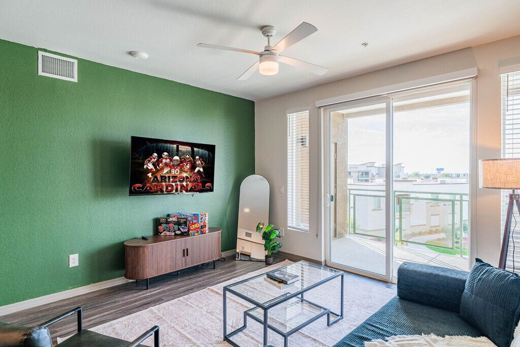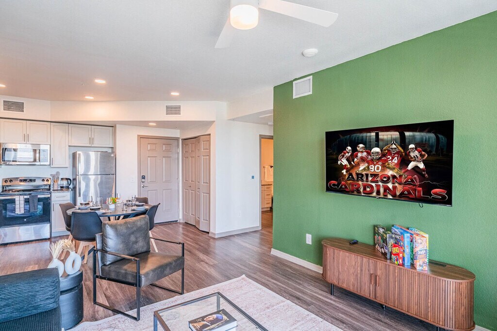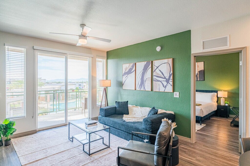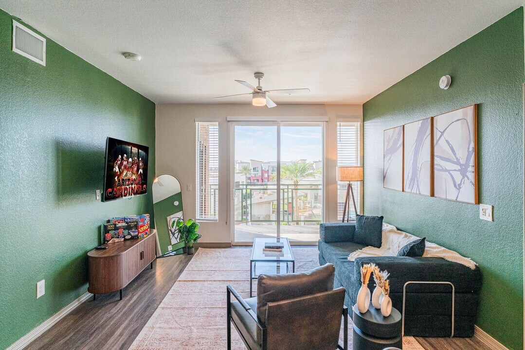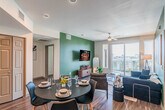 Feel at home in this modern 2-bedroom, 2-bathroom escape located on the 3rd floor of a walk-up building. This upscale apartment features a sleek, open-concept layout that seamlessly connects the kitchen, dining, and living areas. The fully equipped kitchen includes a microwave, stove, oven, refrigerator/freezer, dishwasher, coffee maker with coffee essentials, electric kettle, and a sink with hot and cold water, as well as glassware, silverware, pots, and pans. The living room offers a sofa bed, accent chair, 55" 4K HDR smart TV, and coffee table. The bedroom provides a calming retreat with a bed with fresh pillows, linens, and sheets, an office desk and chair, and reading lamps. The well-appointed full bathroom is stocked with towels, hand towels, washcloths, and essential toiletries. Parking is available on the premises, and instructions will be given at check-in. Pets are allowed depending on size or if they are service animals, and to avoid having your reservation canceled, please inform us in advance and be honest about bringing a pet. An additional cleaning fee of $20 per night is required per pet. There is a 2 pet maximum and only cats/dogs are allowed. Restrictions apply to the following breeds (purebred and/or any mixed form): Akita, American Bulldog, Chow Chow, Doberman, German Shepherd, Husky Breeds, Malamute, Pit Bull Breeds, Presa Canario, Rottweiler, Staffordshire Terrier, and St. Bernard. Conveniently located near top dining, shopping, and local attractions, it’s the ideal home base for an effortless and enjoyable stay. All guests must be 23 years old and above. If you are found to have brought pets without prior notification, there will be a $500 fee. There are noise monitors installed in the apartment that measure noise levels in decibels, and if tampered with, there will be a fee. There are security cameras in the hallways for security. [SI]