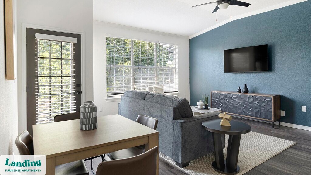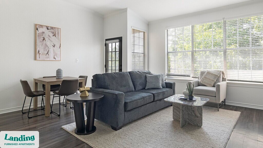 Landing offers flexible lease terms from weeks to months. Please always visit our website or contact us for the latest pricing & availability. Stay longer, save more: 6-Month Minimum base rent: starts at $2535/mo 12-Month Minimum base rent: starts at $2277/mo Landing offers flexible leases across a network of over 35,000 fully-furnished apartments throughout 375+ cities so you can rent on your terms, practically anywhere, and avoid the hassle of paying deposits or application fees. Visit to learn about all the benefits of a Landing membership, see our competitive up-to-date pricing, explore available apartments, take virtual tours, and make reservations online without jumping through traditional rental hoops. Landing's apartments at Cortland North Plano are designed for comfortable, easy living, with the ability to stay as long as you like. Experience living with Landing Every apartment is outfitted with all the modern essentials including: custom-designed furnishings, a fully-equipped kitchen with deluxe stainless steel appliances, a gourmet coffee maker, premium linens, Smart TVs, and incredibly fast, reliable internet for working from home. When you live with Landing, you'll enjoy a hassle-free experience with the added benefit of 24/7 access to our dedicated member experience team. Some of the nitty-gritty: a background check and proof of income are required; we're completely smoke-free; bundled utility packages and pricing vary based on length of stay; pet-friendly options available; listed price reflects a 12-month minimum stay.