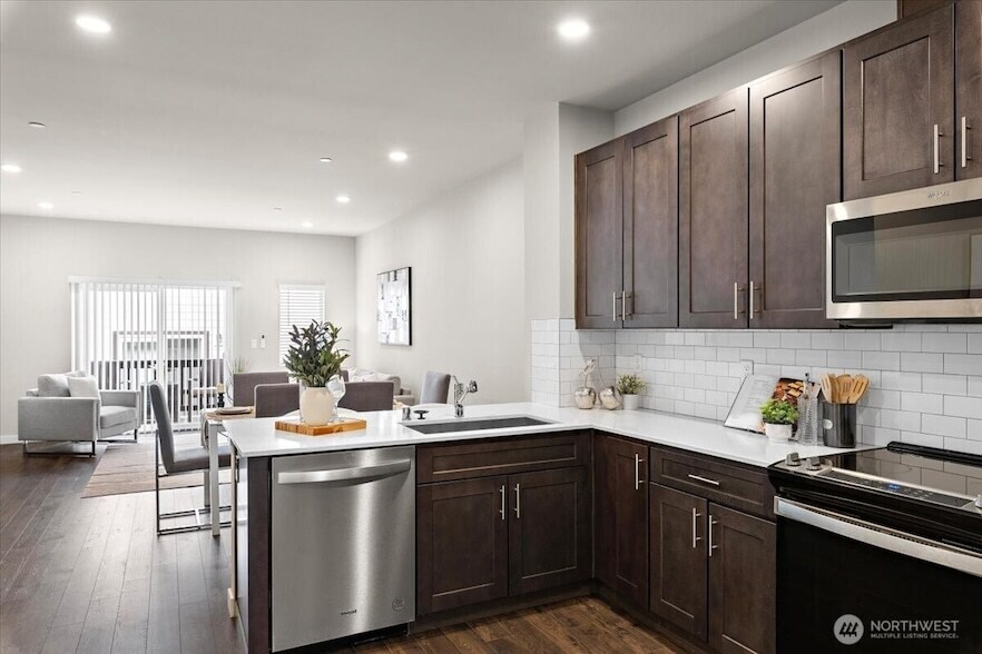 Welcome to Grayson Square, a beautifully designed townhome community in the highly desirable Silver Lake neighborhood. This corner-lot Caitlin floorplan offers 3 bedrooms with a main-floor bedroom featuring a private 3/4 bath perfect for guests or multigenerational living. Upstairs, you ll find a spacious master suite and a second bedroom, both with abundant natural light and generous closets. Built in 2023, this move-in-ready, light-filled home features modern finishes throughout, including a sleek open-concept living area, a kitchen with stainless steel appliances, and a beautiful deck ideal for relaxing or entertaining. The main level bedroom space offers flexible living options perfect as a media room, home office, or guest retreat. Conveniently located near major commuting routes, including I-5, WA-525, WA-99, and I-405, and just minutes from shopping, dining, parks, and entertainment, this townhome provides the perfect combination of style, comfort, and convenience. With thoughtful design, versatile living spaces, and a prime Silver Lake location, this home is ready for you to move in and enjoy the best of modern townhome living. Don t miss the opportunity to make this stunning property your own!
