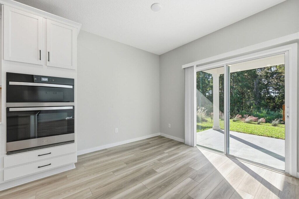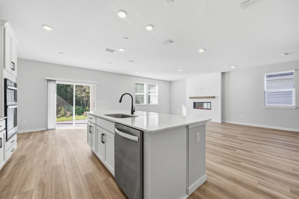 Experience coastal elegance in this brand new 4-bedroom, 3-bath home offering 2,407 sq. ft. of refined design and upscale finishes. The open concept layout showcases elevated wood look LVP flooring, an electric fireplace, and seamless flow between the great room, dining area, and screened covered patio. The chef's kitchen shines with a massive quartz island, stainless steel appliances, tiled backsplash and walk-in pantry. The main level includes a private ensuite, ideal for guests or multigenerational living, while the upstairs primary suite features tray ceilings, dual vanities, and spacious closets. A versatile loft adds flexible living space for work or relaxation. Designer details include quartz counters, satin black hardware, a water softener, and valet entry off the two-car garage. Located in Concourse Crossing, just minutes from Amelia Island's pristine beaches, boutique shopping, dining, and Nassau County's top attractions.