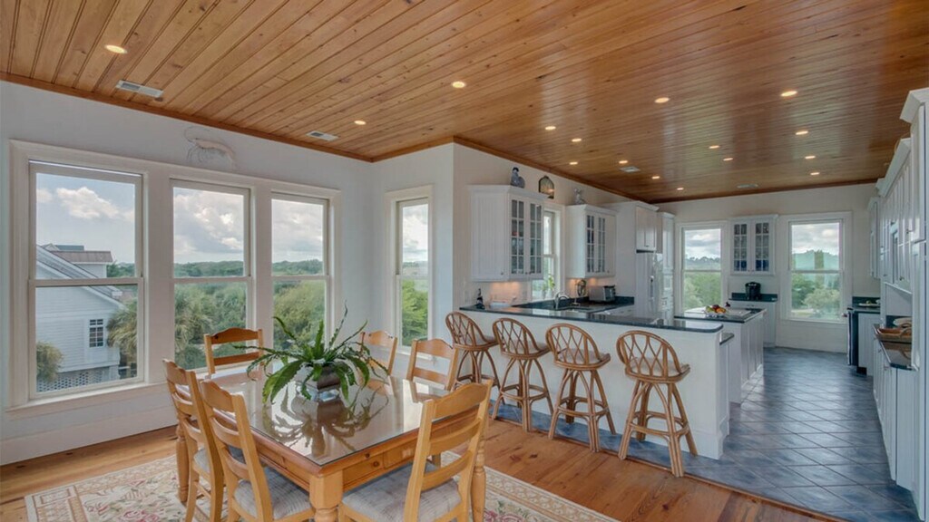 Feel at home in this stunning oceanfront 6-bedroom, 5.5-bathroom home, offering breathtaking views of the beach. The upscale interior includes an open living room, dining room, spacious kitchen, wet bar, and a cozy den. Enjoy the magnificent porches, perfect for witnessing the sunrise and sunset. The property is available for weekly rentals from Friday to Friday year-round. The home is equipped with a first-floor porch lined with rocking chairs and chaise loungers, and a second-level open porch with joggling board rockers and new patio furniture. Additional amenities include a 65-inch 4K flat-screen TV, 4K DVD player, cable, HBO, high-speed internet, a ping pong table, washer and dryer, gas grill, and luxury linens and towels. An elevator is also available for your convenience. Guests can rent beach chairs, umbrellas, bicycles, and kayaks. Grocery delivery, chef services, and babysitting can also be arranged. A temporary club membership is available for $200 per day, granting access to the community pools and dining options. The maximum number of cars allowed is six, with a $20 fee per vehicle to enter the community. Located in the private, oceanfront gated community of DeBordieu Colony near Pawleys Island, South Carolina, this home offers access to miles of beach, tidal creeks, an on-site nature preserve with walking trails and bike paths, and a delightful year-round climate. The community is situated between Charleston and Myrtle Beach, providing easy access to a variety of attractions and activities. Adhere to the no smoking and no pets policy set by the owner. Check-in is only available on Fridays throughout the year. The DeBordieu Colony Community Association charges each vehicle a $20 fee to enter the community, up to a maximum matching the number of bedrooms in the vacation rental property. Our properties are cleaned and sanitized by professionally trained and equipped housekeeper employees, ensuring greater security, quality, and accountability. We use CDC housekeeping protocols, approved disinfectants, and personal protection equipment. Our linens and terry are cleaned and sanitized at our commercial laundry. [SI]
