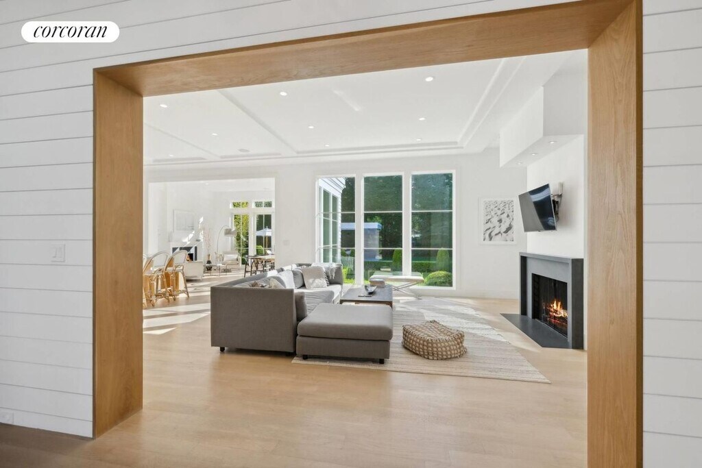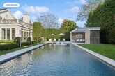 Nestled in the heart of East Hampton Village, this exquisite residence is a marriage of casual elegance and traditional design. Its clean, graceful lines and superb craftsmanship are immediately evident as you approach the home down a gently curving, crushed white marble drive. Enter into a sun drenched, open concept first floor living space with floor to ceiling, south facing windows that flood the home with glowing natural light. Flow effortlessly throughout the first level, from the living room with marble fireplace, through the chef's dine-in kitchen, into the dining room with French doors leading you out into a tranquil and stylish backyard. Completing the impeccable first floor is a junior master suite with chic marble bath and covered patio, an oversized powder room, and mudroom with separate entrance. Follow the custom floating staircase upward to the master suite with soaring ceiling, expansive private terrace with outdoor fireplace and luxurious marble bath with a floating dual vanity and frameless glass shower. Down the hall are two additional en-suite guest bedrooms with custom, marble baths and cathedral ceilings. The attention to detail continues on the light-filled lower level with a large, open media and game room, two generous bedrooms and a full bathroom. Set amidst the private back lawn, an oversized marble patio and modern cabana with pergola abut the heated gunite pool with submerged sundeck; the perfect setting for outdoor entertaining or relaxing under the sun. Venture into the Village for exceptional shopping and dining or visit the Atlantic at one of several world-class beaches, all minutes from the front door.