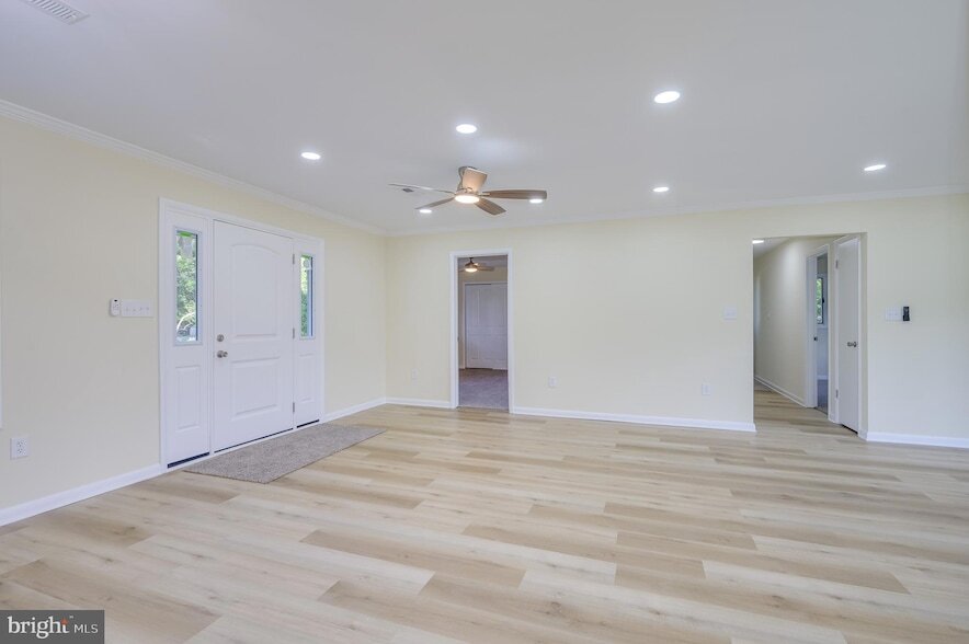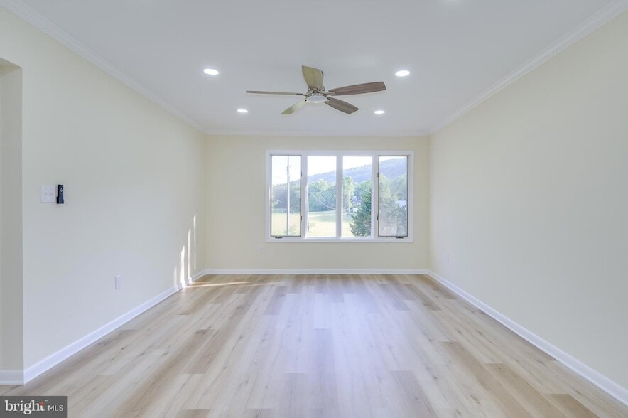 This 5 bedroom, 3 bath home has been completely renovated and is ready for your large or multigenerational family! This beautiful home sits on 1.24 UNRESTRICTED acres. The large gravel driveway provides plenty of parking. The main level features an open floor plan. You enter from the covered front porch into the spacious living room, offering luxury vinyl plank (LVP) flooring, recessed lighting, and dual ceiling fans. This room is bathed in natural light from multiple windows. The living room is open to your dining room and kitchen. This is a great set up for entertaining! The LVP floors carry into the dining room. A decorative light fixture clearly defines the space. Beyond the dining room you have the gorgeous kitchen, featuring classic, white shaker cabinets, granite countertops, and ceramic tile backsplash. All appliances are stainless steel. The large center island provides breakfast bar seating for 4 in addition to extra meal prep and storage space. You have direct deck access from your kitchen through the side door. The laundry room with LVP and white shaker cabinets keeps machines nicely tucked away. The main level features three generously sized bedrooms with carpet, closets, and ceiling fans. Hall bathroom features LVP, single bowl shaker vanity, and tub/shower. The primary suite is immaculate, featuring carpet and a ceiling fan. You have a private ensuite bathroom with LVP floors, tub/shower, and extended shaker vanity. Your suite is completed by a large walk-in closet for tons of storage space. The lower level of the home features a large mudroom with LVP, recessed lighting and guest closet. To your right you have a huge family room, featuring LVP floors, ceiling fan, and recessed lighting. Sliding glass door leads out to gravel driveway. This space would be great for gathering with friends and family. Beyond this space, you'll find bedrooms 4 and 5 with carpet, closets, and ceiling fans. The lower-level full bath features LVP, single bowl shaker vanity, and tub/shower. There is also an office/den on this level that would be great for work from home or a guest room. The basement of the property features a huge 30 x 50 (six car) garage space with access from the lower driveway. In addition to the garage space, there are several other potential uses down here. The concrete floors would make it great for a home gym, bring your weights! Make it whatever you need! Outside the home you have a HUGE deck off of the main level. This is the perfect space for hosting BBQs or just enjoying the stunning mountain views. The rear yard is level and lush with grass. Mature trees provide ample privacy. This home has the room you need for your family! Schedule your showing today!