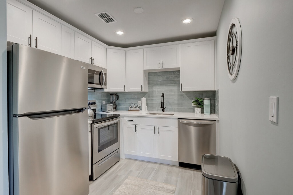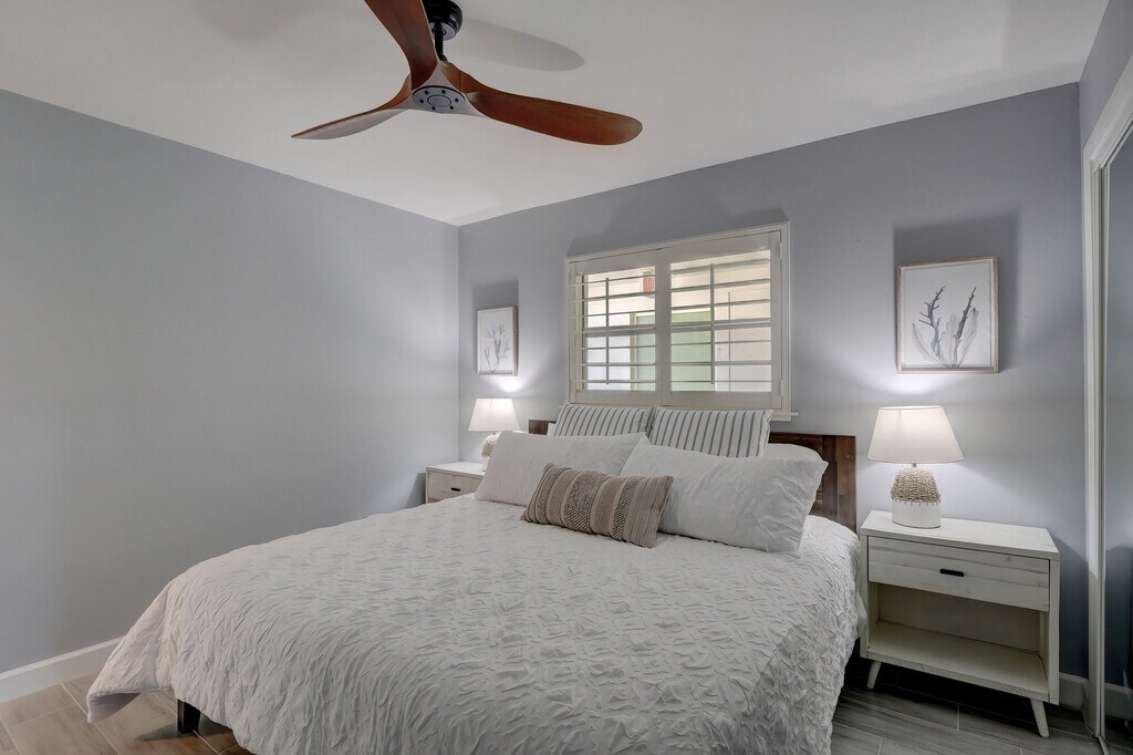 This seasonal rental condo is nestled in the Bayview Complex, right off 9th Ave South in downtown Naples. Completely refurbished in late 2022, this beach chic apartment offers a pedestrian-friendly location, just a short walk to the beach, downtown Naples, and various waterfront restaurants and charters. Situated on the second floor, the condo is accessible via a set of stairs and a brief walk down an open corridor, offering views of the common garden below. The condo features an inviting living space with a family room to the right and dining and kitchen areas to the left. The family room includes a sofa with a pull-out bed, a large wall-mounted smart TV, an accent chair, a coffee table, and multiple lamps. The kitchen is equipped with a full stainless steel appliance package, white cabinets, and a beautiful backsplash, along with additional appliances like a Keurig, blender, toaster, and tea kettle. The bedroom boasts a king-size bed with dual nightstands and lamps, and the attached bathroom features a single vanity, a large mirror, and a glass-enclosed shower with beautiful tile and black hardware. Located in the heart of downtown Naples, this condo offers one of the best rental locations in the city. Guests can easily walk to the beach, less than a mile away, and explore 5th Ave S with its fabulous shops and restaurants. Nearby waterfront dining options include The Dock, The Boathouse, and Tin City. While a vehicle is recommended due to Naples' size, the Fort Myers International Airport is approximately a 45-minute drive from the condo. Pets are not allowed in this property. Quiet hours are enforced between 22:00 and 8:00. This is a self-check-in property, and you will receive the codes once full payment and HOA approval are received. Common coin-operated laundry facilities are available in the complex, though there is no change machine on site. The unit sustained no damage from Hurricane Ian in September 2022. Registration Number: Florida state permit number: #CND2103205 [SI]