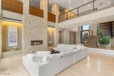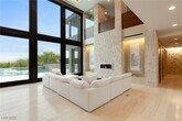 This reimagined two-story custom luxury estate offers exceptional privacy and panoramic views on a 0.43-acre homesite with no backyard neighbors, overlooking the Amara private golf course. The 7,362-square-foot residence features 5 bedrooms, 7 bathrooms, and a 4-car garage, with added interior square footage, abundant natural light, paid-off solar, and a built-in sauna. The entire exterior has been fully redone, including a brand-new pool and updated landscaping, creating a private resort-style backyard. Extended balconies capture sweeping Strip, golf course, and mountain views, while a covered patio with built-in BBQ, sink, and mini fridge is ideal for entertaining. The primary suite is a true retreat with a fireplace, spa-style bath, freestanding soaking tub, oversized walk-in shower, double vanities, and a rare third closet. Located within The Ridges, this is a rare opportunity to own a substantially upgraded luxury home in one of Las Vegas most prestigious guard-gated communities.