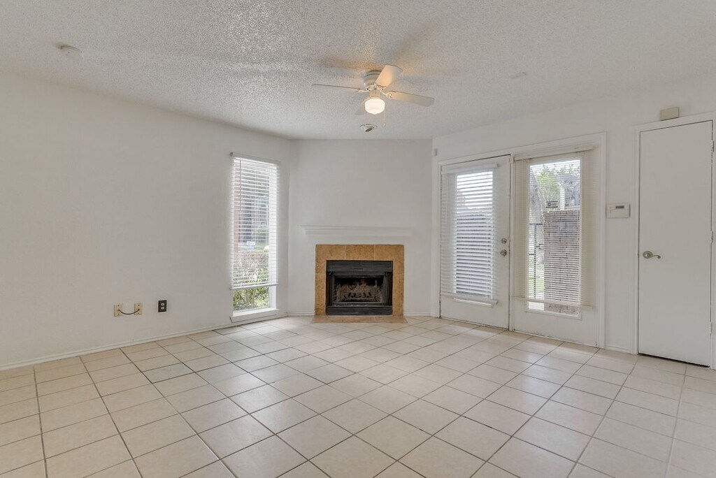 This well-maintained condo offers comfort and convenience in a sought-after area, just minutes from shopping, dining, and recreational spots. Enjoy cozy evenings by the beautiful brick, wood-burning fireplace. The home features updated ceramic tile flooring throughout and energy-efficient ceiling fans for year-round comfort.The kitchen comes fully equipped with all appliances, and a stacked washer and dryer are included for your convenience. Located within the highly rated Richardson ISD!