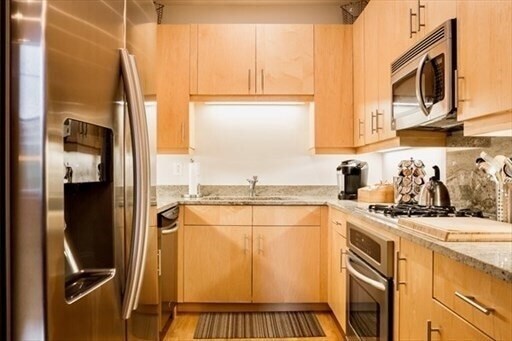 Live on the Greenway in one of downtown Boston s most desirable and centrally located neighborhoods. This FURNISHED second floor unit is an industrial LOFT with soaring 12+ foot ceilings, over-sized windows, exposed original brick & granite walls, hardwood floors and wood beams - this space is full of character. This professionally designed space features custom closets with sliding doors, a large sliding reclaimed wood door that separates the bedroom, a raised sleeping area and suspended dining table. Chef s kitchen with stainless appliances, gas cook top and granite counters. In unit laundry with full-size washer and dryer, plenty of storage and central air conditioning. The professionally managed building offers on-site superintendent services, mail room, bike storage, elevator access and deeded storage area in the basement. Internet included. 24 Hours notice for showings