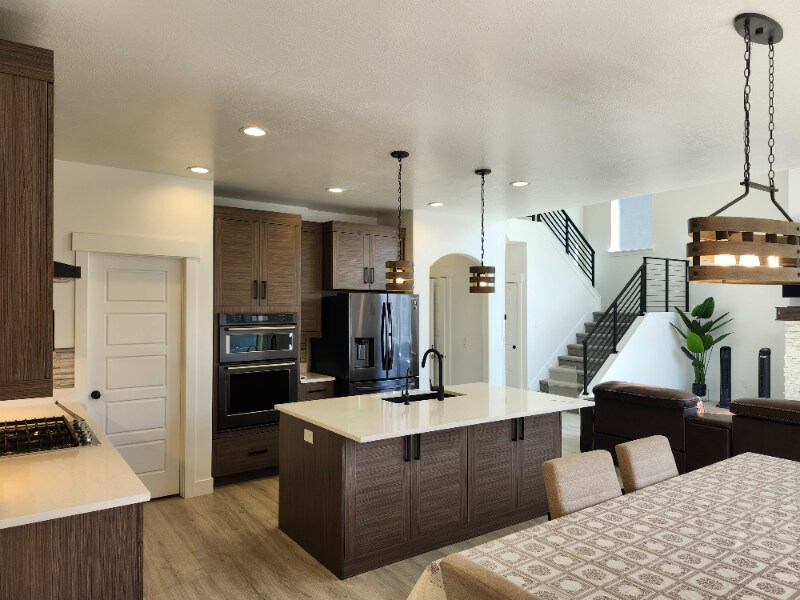 Property Id: 1470615 All utilities paid by owner for an additional $400/m. This includes Water, Electricity, Gas, Trash, HOA, and Gigabit high-speed fiber internet on a mesh router system! This gorgeous 4br/3ba home is fully furnished with remote-black out curtains, hydraulic sectional couch and beds, e large flat-screen TVs, a fireplace, all new appliances, and a fully fenced backyard. It is in a quiet neighborhood, but is still walking distance to the community center, gym, pool, park, playground, library, shopping, and the Saratoga Springs Main Street! 5 minutes off the freeway makes for easy commuting and exploration to all that Saratoga Springs can offer! This is the upstairs unit (basement is a separate rental), but comes with a 2-car garage, large vaulted ceilings, natural lighting, central A/C & heat, open, spacious floorplans and new LVP flooring throughout! TLC Property Management has 5 stars and seeks to help you feel at home. Video Walkthrough link: