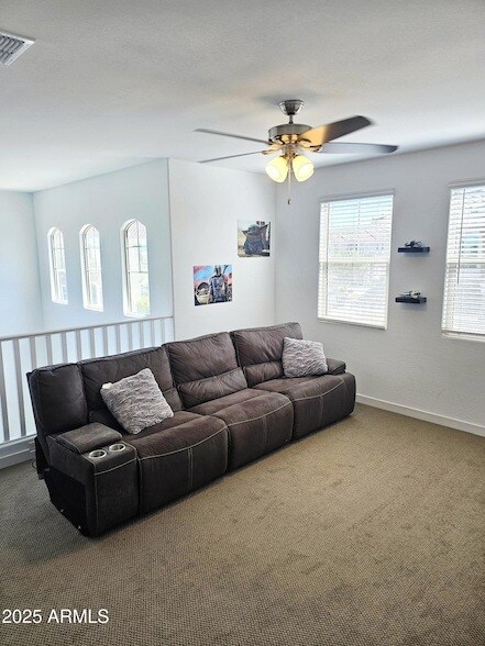 4 Bedroom, 3 Bathroom home in the Cadence Gateway Community. Home is on a corner lot and backs up to community greenbelt and park for an open feel. One bedroom and bathroom on the main floor with 3 bedrooms and a loft upstairs. HOA takes care of the front yard landscape. The backyard has artificial turf and pavers. The Cadence community amenities include: Resort style pool with water slides, Lap pool, Large hot tub, gym, game room, basketball court, tennis courts, parks and much more.
