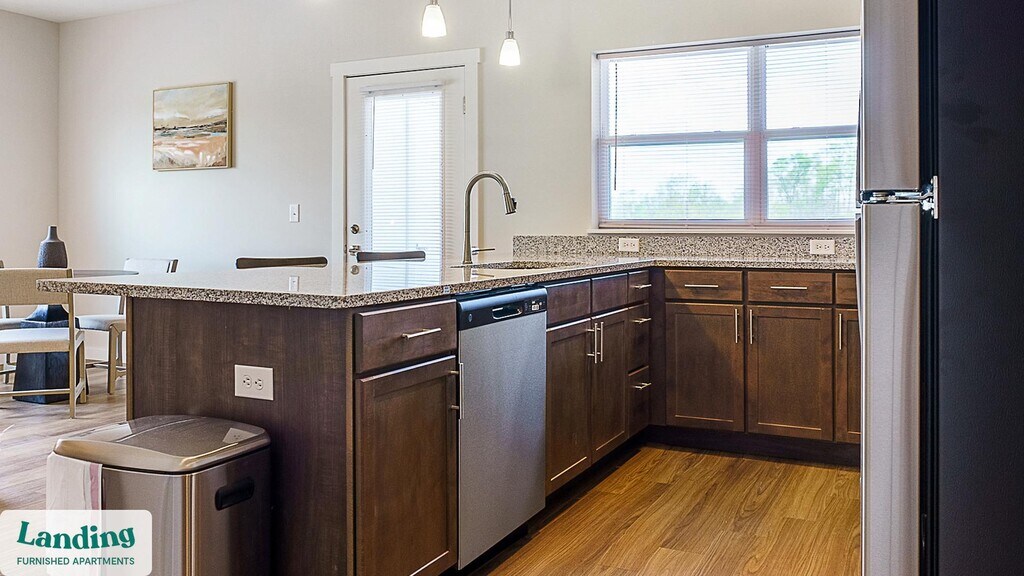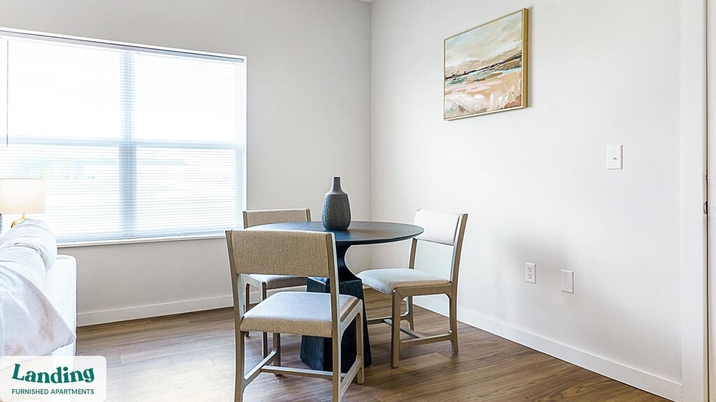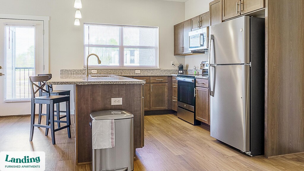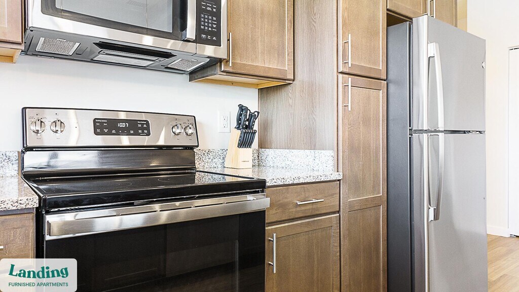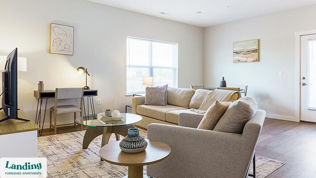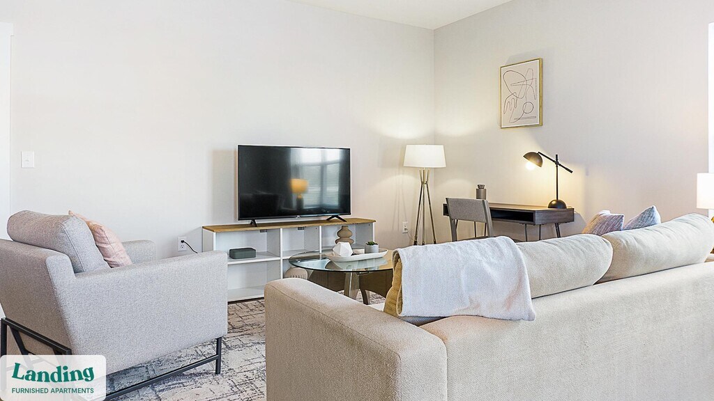 Landing offers flexible lease terms from weeks to months. Please always visit our website or contact us for the latest pricing & availability. Stay longer, save more: 6-Month Minimum base rent: starts at $2096/mo 12-Month Minimum base rent: starts at $2226/mo Landing offers flexible leases across a network of over 35,000 fully-furnished apartments throughout 375+ cities so you can rent on your terms, practically anywhere, and avoid the hassle of paying deposits or application fees. Visit to learn about all the benefits of a Landing membership, see our competitive up-to-date pricing, explore available apartments, take virtual tours, and make reservations online without jumping through traditional rental hoops. Landing's apartments at The Landing are designed for comfortable, easy living, with the ability to stay as long as you like. Experience living with Landing Every apartment is outfitted with all the modern essentials including: custom-designed furnishings, a fully-equipped kitchen with deluxe stainless steel appliances, a gourmet coffee maker, premium linens, Smart TVs, and incredibly fast, reliable internet for working from home. When you live with Landing, you'll enjoy a hassle-free experience with the added benefit of 24/7 access to our dedicated member experience team. Some of the nitty-gritty: a background check and proof of income are required; we're completely smoke-free; bundled utility packages and pricing vary based on length of stay; pet-friendly options available; listed price reflects a 12-month minimum stay.