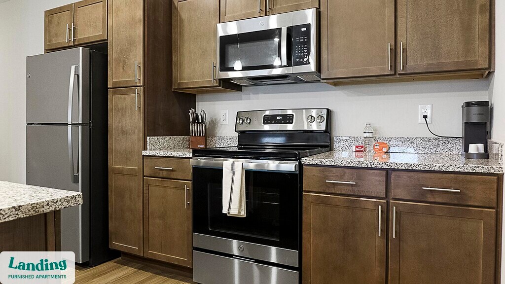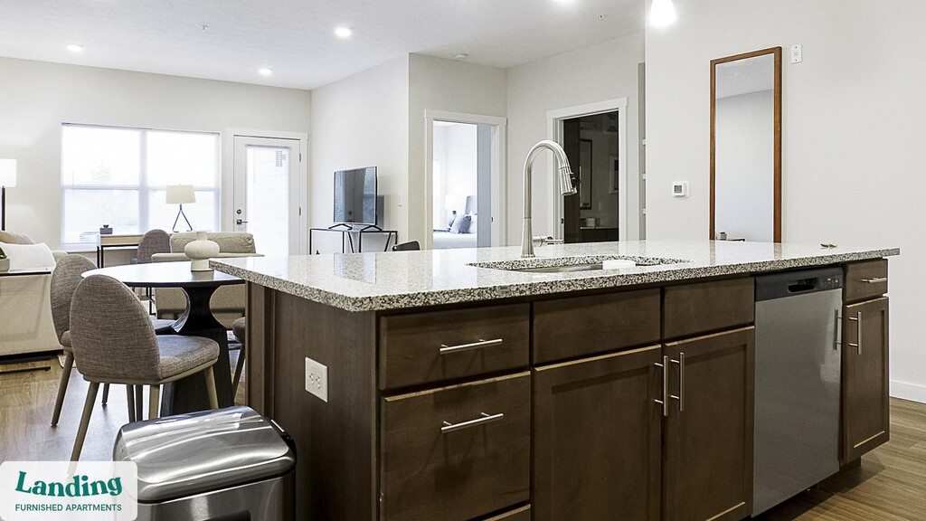 Landing offers flexible lease terms from weeks to months. Please always visit our website or contact us for the latest pricing & availability. Stay longer, save more: 6-Month Minimum base rent: starts at $2096/mo 12-Month Minimum base rent: starts at $1780/mo Landing offers flexible leases across a network of over 35,000 fully-furnished apartments throughout 375+ cities so you can rent on your terms, practically anywhere, and avoid the hassle of paying deposits or application fees. Visit to learn about all the benefits of a Landing membership, see our competitive up-to-date pricing, explore available apartments, take virtual tours, and make reservations online without jumping through traditional rental hoops. Landing's apartments at The Landing are designed for comfortable, easy living, with the ability to stay as long as you like. Experience living with Landing Every apartment is outfitted with all the modern essentials including: custom-designed furnishings, a fully-equipped kitchen with deluxe stainless steel appliances, a gourmet coffee maker, premium linens, Smart TVs, and incredibly fast, reliable internet for working from home. When you live with Landing, you'll enjoy a hassle-free experience with the added benefit of 24/7 access to our dedicated member experience team. Some of the nitty-gritty: a background check and proof of income are required; we're completely smoke-free; bundled utility packages and pricing vary based on length of stay; pet-friendly options available; listed price reflects a 12-month minimum stay.