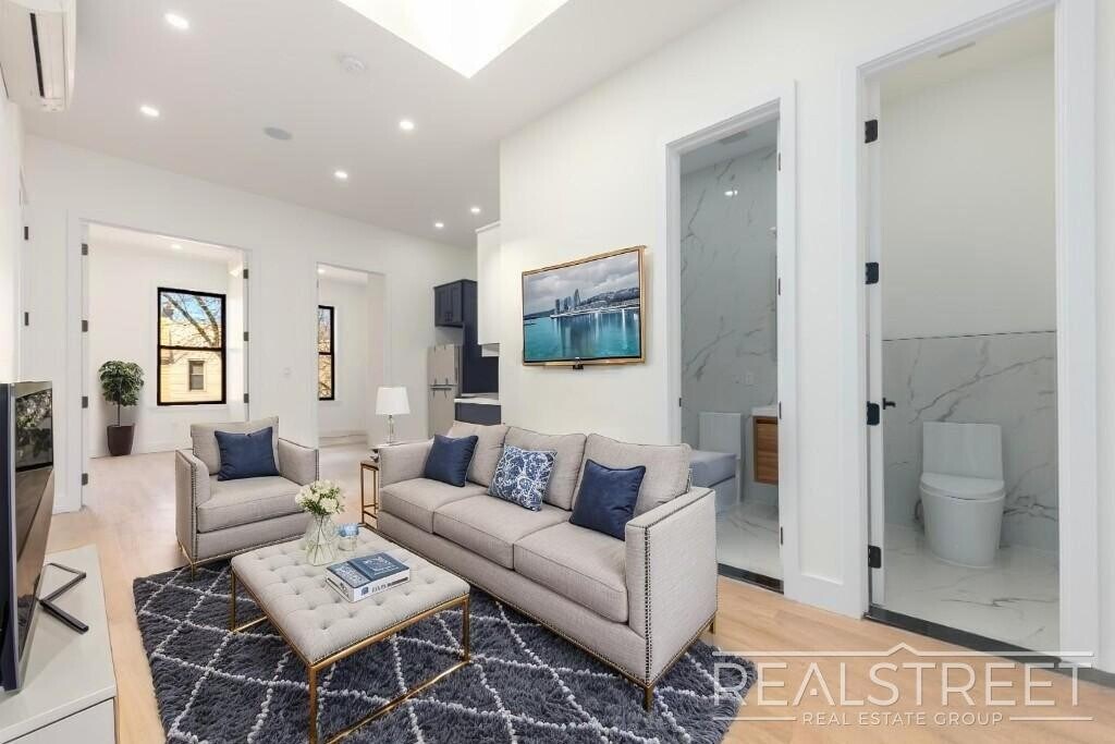 This spacious and modern 4-bedroom, 2-bath home combines style and convenience in the heart of Bushwick. The open-concept kitchen features sleek shaker cabinets, stainless steel appliances, and Quartz Carrara countertops. The bright living area offers tall ceilings, recessed LED lighting, Bluetooth surround sound, wide-plank white oak floors, and access to a private balcony.Each queen- or king-sized bedroom is bathed in natural light from oversized windows and includes large closets and individual A/C & heat units. Bathrooms are luxuriously designed with rainfall shower heads, soaking tubs, floating vanities, and smart defogging mirrors.Perfectly located just steps from the J/Z trains and surrounded by trendy eateries, cafes, and shops along Broadway and Bushwick Avenue.Features:Washer & Dryer In-UnitPrivate BalconyCentral AirVirtual Security IntercomBluetooth Speaker SystemPets Welcome (with approval)Guarantors Accepted
