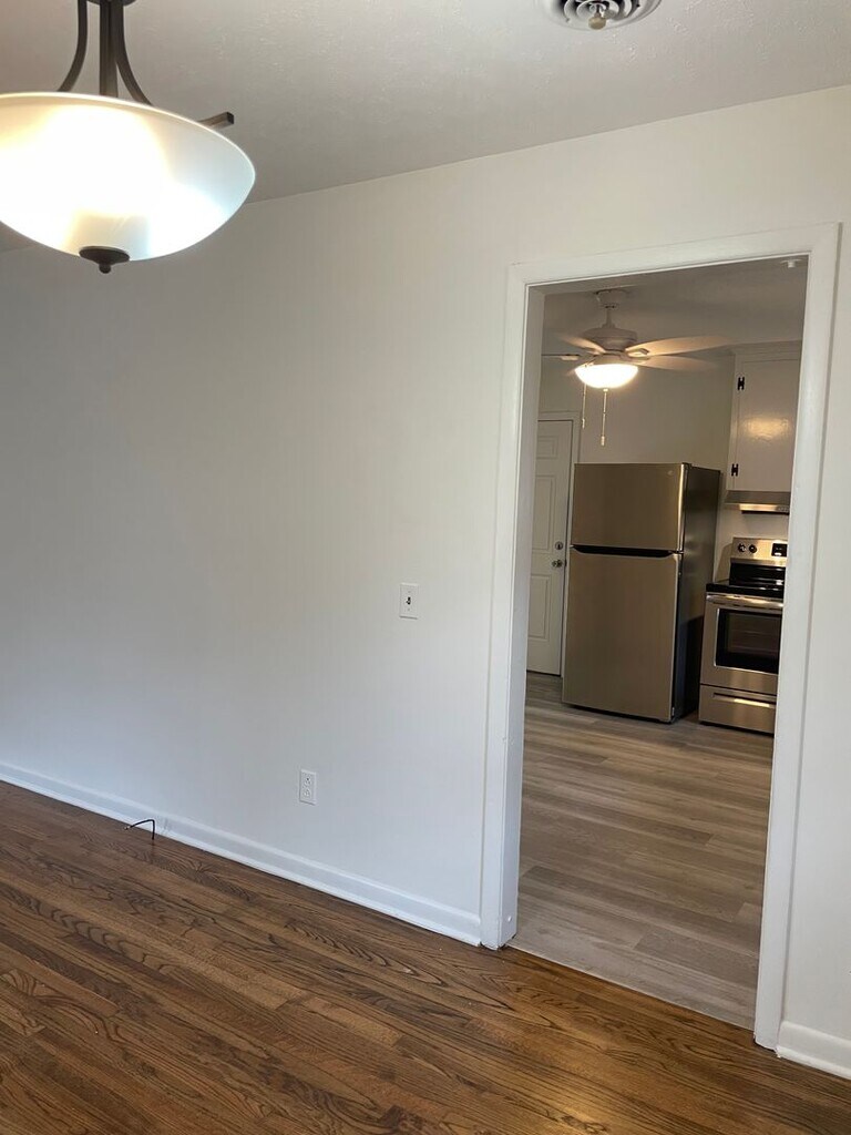 Just needs to be cleaned before move in. This precious 2BR/2BA brick home has refinished hardwood floors throughout. Brand new bathroom added with new LVP flooring. Spacious living room, kitchen has lots of cabinets/new LVP flooring/new stainless appliances. Fresh paint throughout. New gas heat/furnace recently added. New fans and lighting fixtures throughout. Storage closet in the back. Nice back patio off the kitchen offers a great place to cook out and relax. Lawn care included. Conveniently located close to Kroger grocery store, drug stores, restaurants, and much more. Call 360 Management today to schedule an appointment to see this cute home.
