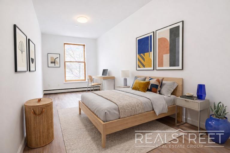 Welcome to this beautifully renovated full-floor 2-bedroom home on Malcolm X Blvdoffering rare scale, privacy, and clean modern finishes throughout.The apartment opens into an oversized living and dining area with multiple windows pouring in natural lighteasily accommodating a full living setup, dining, and work-from-home space.Both bedrooms are well-proportioned and spacious, set apart for privacy and flexibility.The windowed kitchen features modern cabinetry, full-size appliances, and clean finishes, while the bathroom is fully updated with sleek tilework and a deep soaking tub.Additional highlights:Great closet spaceFull-floor layout for added privacyBrand new renovationWide-plank flooring throughoutRecessed lighting Location:1 minute to the A train for an easy commuteSurrounded by neighborhood cafes, restaurants, and everyday essentialsA rare combination of space, light, and convenience.Available immediately. Showings starting ASAPreach out to schedule