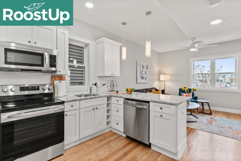 No broker fee! Only last month deposit needed. RoostUp is offering a beautifully renovated private bedroom with ensuite bath in South Boston. Less than a 15 minute walk to Broadway MBTA Red Line train station in a 5 bedroom/4 bath apartment. Check out RoostUp's 100+reviews averaging 4.8-stars on Google and Facebook. Completely furnished all-inclusive concept from RoostUp. Fully-equipped kitchen included with granite countertops, new appliances and 4K Smart TV. RoostUp amenities include all utilities, high-speed WiFi, in-unit laundry, central air, and bi-weekly cleaning. Here's what is included: Furnished private bedroom with private ensuite bath ------------------------------------------------------ - New bed and high quality mattress - Matching dresser with desk, lamp and chair - Full length mirror and coat rack - Custom closet system with built in storage Stocked kitchen and furnished living area ------------------------------------------ - Renovated kitchen with new countertops & stainless steel appliances - Kitchenware, dishes, glassware and flatware - Fully furnished including sofa, chairs, coffee table - 4K Smart TV Utilities & Cleaning ------------------- - All utilities (gas, electric, wifi) - Bi-weekly professional cleaning - 1Gbps WiFi - Keyless smartphone locks - Central A/C - Free in-unit laundry - Weekly trash and recycling removal - Included for one flat monthly fee RoostUp never charges a broker fee or security deposit. Only First and Last Month Rent due at lease signing. Sorry, no pets. The RoostUp application process includes a credit and background screening. International applicants can submit copies of valid passport & visa. Please note there is an application process that includes a credit and background check.