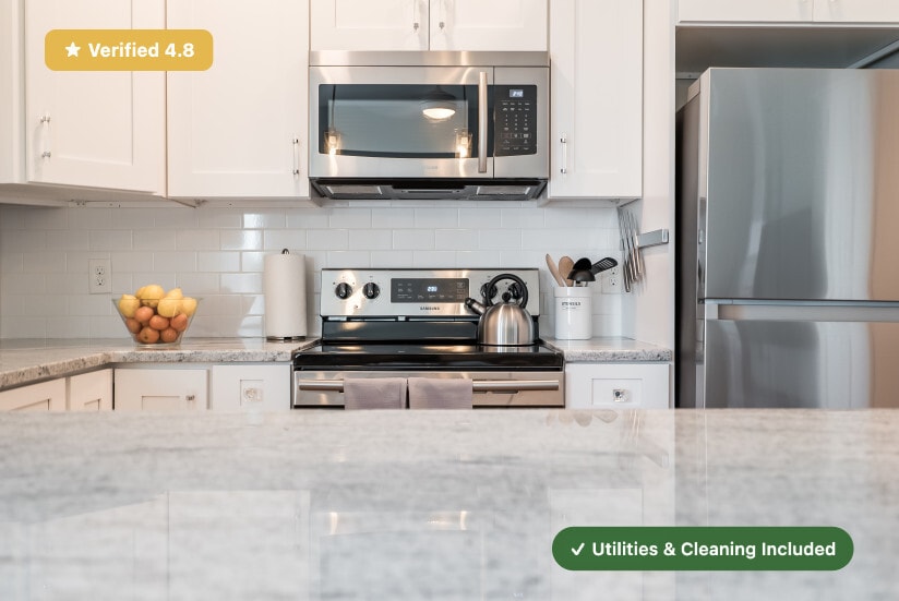 No broker fee! Only last month deposit needed. RoostUp is offering a beautifully renovated private bedroom in Cambridge. Less than a 15 minute walk to Kendall Sq MBTA Red Line train station in a 4 bedroom/2 bath apartment. Check out RoostUp's 100+reviews averaging 4.8-stars on Google and Facebook. Completely furnished all-inclusive concept from RoostUp. Fully-equipped kitchen included with granite countertops, new appliances and 4K Smart TV. RoostUp amenities include all utilities, high-speed WiFi, in-unit laundry, central air, and bi-weekly cleaning. Here's what is included: Furnished private bedroom ------------------------------------------------------ - New bed and high quality mattress - Matching dresser with desk, lamp and chair - Full length mirror and coat rack - Custom closet system with built in storage Stocked kitchen and furnished living area ------------------------------------------ - Renovated kitchen with new countertops & stainless steel appliances - Kitchenware, dishes, glassware and flatware - Fully furnished including sofa, chairs, coffee table - 4K Smart TV Utilities & Cleaning ------------------- - All utilities (gas, electric, wifi) - Bi-weekly professional cleaning - 1Gbps WiFi - Keyless smartphone locks - Central A/C - Free in-unit laundry - Weekly trash and recycling removal - Included for one flat monthly fee RoostUp never charges a broker fee or security deposit. Only First and Last Month Rent due at lease signing. Sorry, no pets. The RoostUp application process includes a credit and background screening. International applicants can submit copies of valid passport & visa. Please note there is an application process that includes a credit and background check.