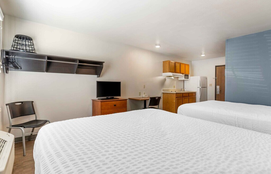 Enjoy a fully furnished studio suite in our hotel at an affordable rate with free wi-fi, free utilities and free premium cable. Each studio suite has a full kitchen with full-size refrigerator, stovetop and microwave, and has a flexible workspace and plenty of storage. All our hotels are pet-friendly and have on-site guest laundry available. Plus, there are no long-term commitments and you can adjust your length of stay to meet your individual needs, subject to applicable property and/or local restrictions. Additional fees may apply. Booking restrictions and taxes apply. Rates and availability are subject to change without notice.
