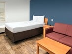Enjoy a fully furnished studio suite in our hotel at an affordable rate with free wi-fi, free utilities and free premium cable. Each studio suite has a full kitchen with full-size refrigerator, stovetop and microwave, and has a flexible workspace and plenty of storage. All our hotels are pet-friendly and have on-site guest laundry available. Plus, there are no long-term commitments and you can adjust your length of stay to meet your individual needs, subject to applicable property and/or local restrictions. Additional fees may apply. Booking restrictions and taxes apply. Rates and availability are subject to change without notice.