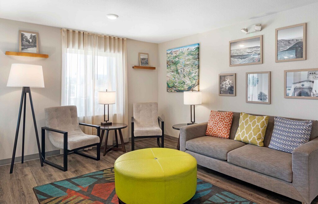 Enjoy a fully furnished studio suite in our hotel at an affordable rate with free wi-fi, free utilities and free premium cable. Each studio suite has a full kitchen with full-size refrigerator, stovetop and microwave, and has a flexible workspace and plenty of storage. All our hotels are pet-friendly and have on-site guest laundry available. Plus, there are no long-term commitments and you can adjust your length of stay to meet your individual needs, subject to applicable property and/or local restrictions. Additional fees may apply. Booking restrictions and taxes apply. Rates and availability are subject to change without notice.