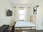 Room for rent: This private Queen room in a 4 bedroom / 2 bathroom apartment, located in Prospect Lefferts is available on a flexible 1-18 month lease - Furnished, brand new luxury building in Bushwick, 4rd floor (elevator building), apartment has a private terrace. - Building amenities: laundry, gym, rooftop, lounge. - Living room: sofa, coffee table, HD TV, kitchen table. - 1 minute walk to J, Z, M trains (21 minutes to Manhattan) - Centrally located, minutes to restaurants, cafes, salons, gyms, laundry - Location: Madison St and Bushwick Ave in Brooklyn