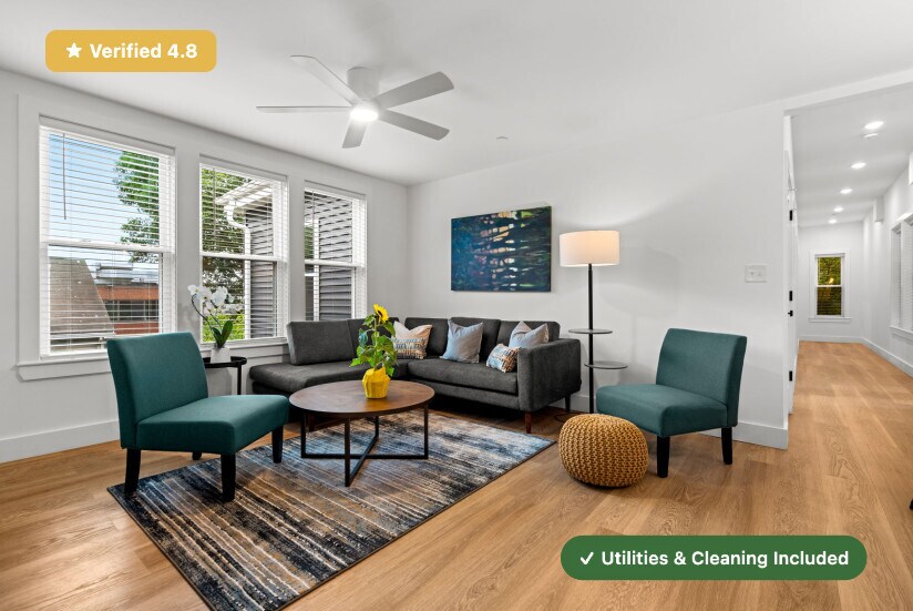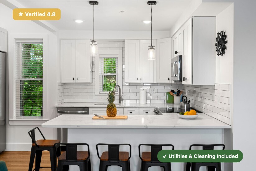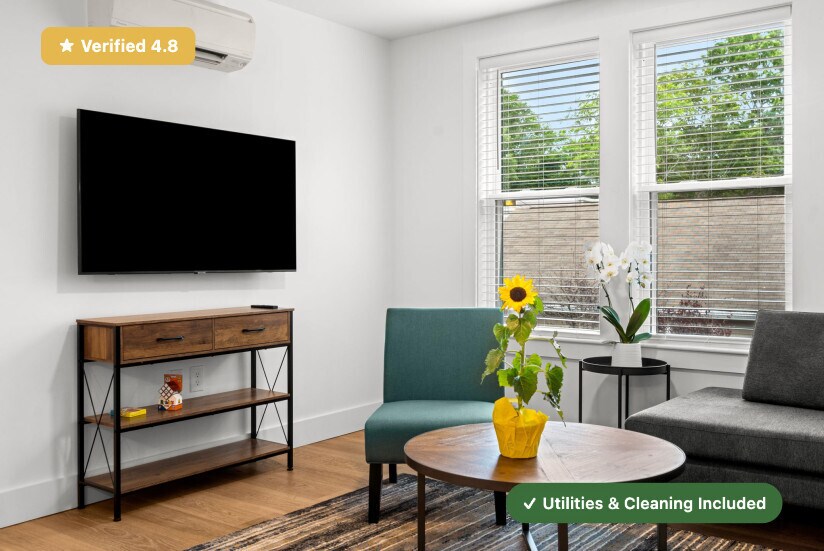 RoostUp is offering a beautifully renovated private bedroom with ensuite bath in the Mission Hill Neighborhood of Boston. Less than a 5 minute walk to Heath St. MBTA Green Line train station in a 7 bedroom/7 bath apartment. Check out RoostUp's 100+reviews averaging 4.8-stars on Google and Facebook. Completely furnished all-inclusive concept from RoostUp. Fully-equipped kitchen included with granite countertops, new appliances and 4K Smart TV. RoostUp amenities include all utilities, high-speed WiFi, in-unit laundry, central air, and bi-weekly cleaning. Here's what is included: Furnished private bedroom with private ensuite bath ------------------------------------------------------ - New bed and high quality mattress - Matching dresser with desk, lamp and chair - Full length mirror and coat rack - Full-size closet Stocked kitchen and furnished living area ------------------------------------------ - Renovated kitchen with new countertops & stainless steel appliances - Kitchenware, dishes, glassware and flatware - Fully furnished including sofa, chairs, coffee table - 4K Smart TV Utilities & Cleaning ------------------- - All utilities (gas, electric, wifi) - Bi-weekly professional cleaning - 1Gbps WiFi - Keyless smartphone locks - Central A/C - Free in-unit laundry - Weekly trash and recycling removal - Included for one flat monthly fee RoostUp never charges a broker fee or security deposit. Only First and Last Month Rent due at lease signing. Sorry, no pets. The RoostUp application process includes a credit and background screening. International applicants can submit copies of valid passport & visa. Please note there is an application process that includes a credit and background check.