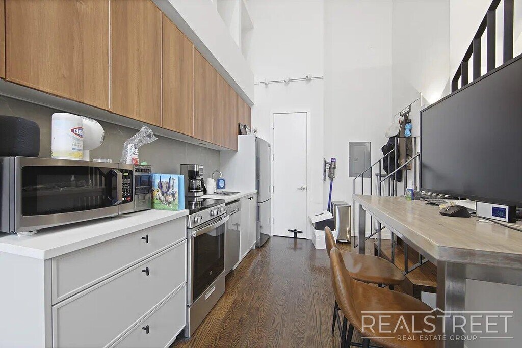 Spacious duplex 2 bed 2baths Duplex in Prime Williamsburg!These units never last long! Located on top of the Bedford L!!The highlights of this pet friendly unit are- IN UNIT laundry! Dishwasher High ceilings Balcony Central heat + AC Huge closets Hardwood floors Amazing shared roof space with stunning city views!