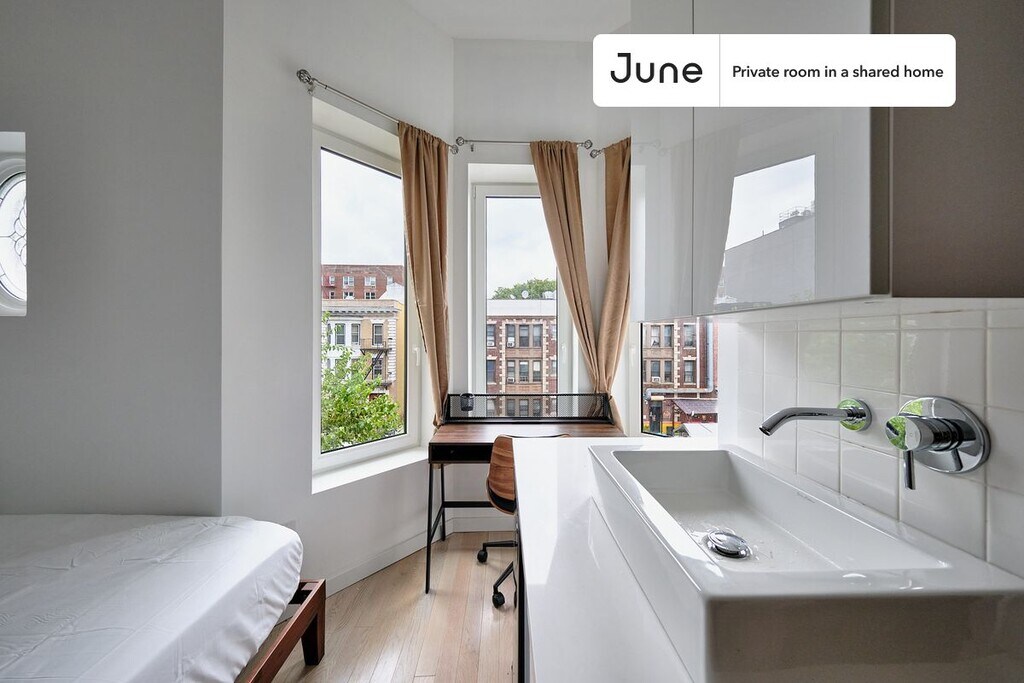 Room for rent: Get $300 off your stay — book by October 31! PLEASE NOTE: This is a private room in a shared apartment. You will have your own bedroom and shared common areas (kitchen, bathroom, etc.) with other residents. Full bedroom in a 4 bedroom / 4 bathroom apartment! Be the first to live in this beautiful BRAND NEW APARTMENT featuring a PRIVATE BATH and a BACKYARD. This Full room in Ditmas Park is available on a 12 month lease or a flexible short term (31 to 364 days) lease. You pick your custom start and end date. Monthly rent rate is determined by furnishing preference, move-in date and move-out date. Speak to a June representative for recommendations on the best stay duration for the lowest rate. Amenities of this home: Furnished Common Areas, Wi-Fi - Paid separately (High-Speed), Outdoor space, Guarantors Allowed, Couple-Friendly, Gym, Laundry - Paid separately (in building), Residents lounge, Hardwood Flooring, Microwave, Oven, Refrigerator, Shared Backyard, also, this unit is conveniently located, several local parks, restaurants and bars are just minutes away. About June Homes: Welcome to the easiest rental experience of your life. Rent furnished or unfurnished apartments on a 12 month lease or a flexible short term (31 to 364 days). As a resident, you’ll have access to 24/7 support and monthly cleanings of the home’s shared spaces. Sign up now to apply online for your next home with June. Brokers welcome! Contact us for more details. Speak to a June representative for recommendations on the best stay duration for the lowest rate, and learn more about this home on the June website. Use this listing ID when speaking to June team: #1895 A