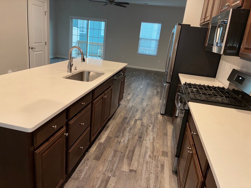 Room for rent: Beautiful, well-maintained townhome located in the master-planned 751 South neighborhood in southern Durham. Offering 4 spacious bedrooms, 3.5 bathrooms, and a 2-car garage, this open design provides both comfort and flexibility. The first floor features a generous size bedroom with French doors. The second floor places the kitchen at the heart of the home, complete with quartz countertops, stainless steel appliances, a gas range, classic white subway tile backsplash, under-cabinet lighting, and a deep walk-in pantry. The expansive living area flows seamlessly to a large deck, perfect for enjoying beautiful sunset views. On the third floor, the primary suite boasts an oversized remote-controlled ceiling fan and lights, a generous walk-in closet, a soaking tub, and a separate walk-in shower. Two additional well-sized bedrooms on this level provide ample space and share a bathroom. The 751 South community is designed to enhance your lifestyle with parks, multiple playgrounds, a gym, a resort-style pool, and a clubhouse. Its prime location offers convenient access to Southpoint Mall, RTP, RDU, Downtown Durham, UNC, and a wide array of shops and restaurants. Note: Do not visit this property without first contacting us to schedule a tour at the number below.