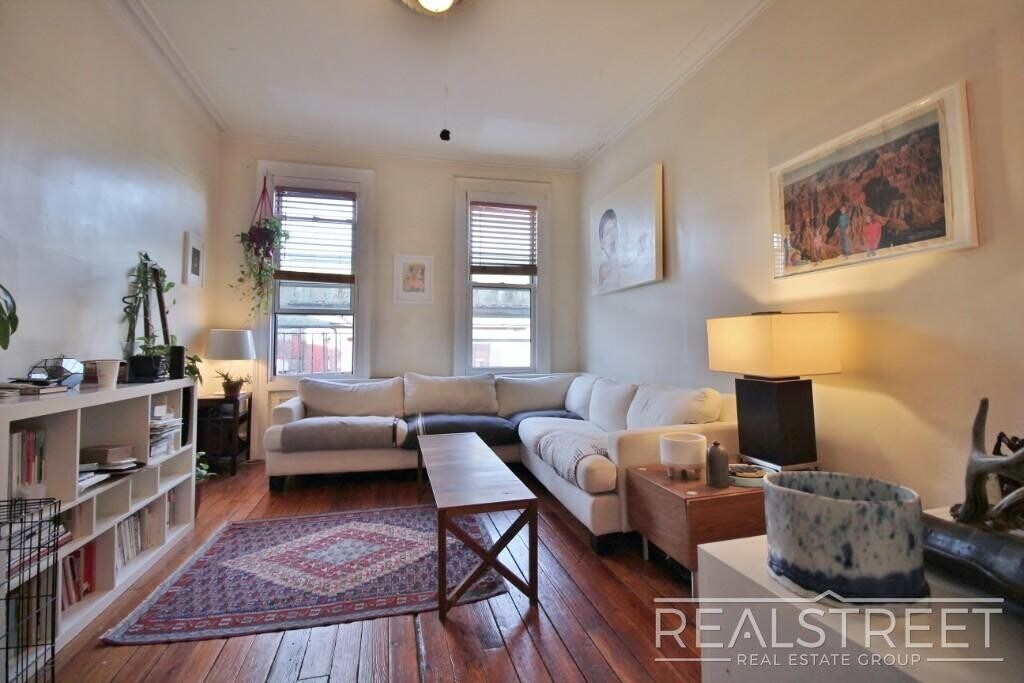 Welcome to this bright and airy third-floor apartment in the heart of Bushwick!This spacious home offers large rooms, hardwood floors, and high ceilings, all bathed in natural sunlight. The inviting living area flows into a windowed kitchen, perfect for everyday cooking and entertaining. Just behind the living room, youll find a versatile bonus room ideal for a home office or walk-in closet followed by a generously sized bedroom.Located just steps from the J, M, and Z trains, and surrounded by trendy cafs, bars, and local favorites, this apartment combines convenience with authentic Brooklyn charm. Heat and water are included; pets are welcome upon approval, and guarantors are accepted.